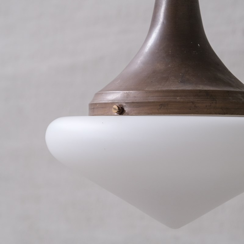 Single Matt Opaline Glass Mid-Century Pendant Light
