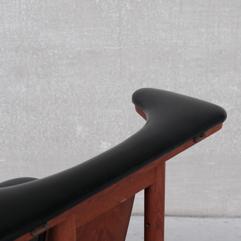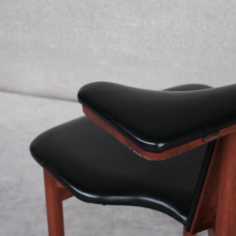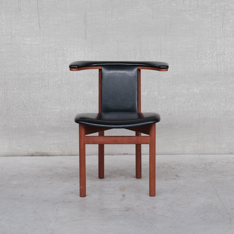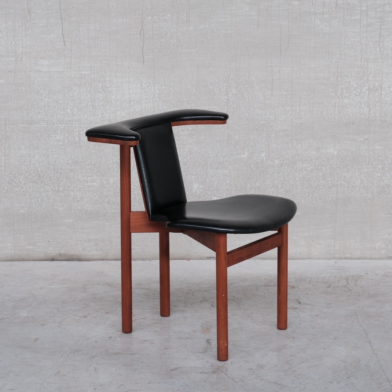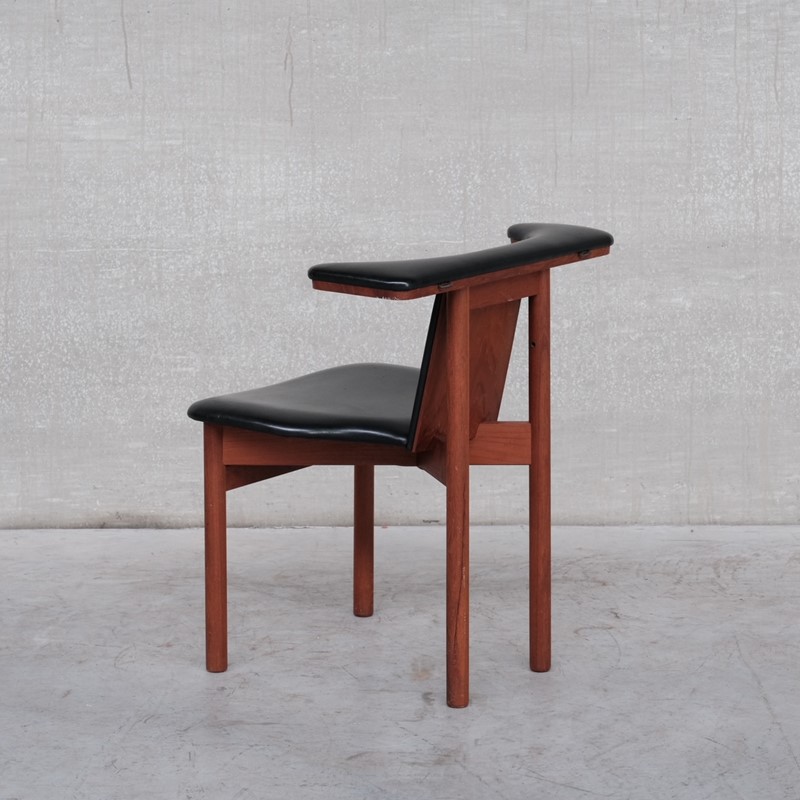 A stylish single desk chair. Likely Danish, c1960s. Leatherette and Teak. Remains in good condition, some scuffs and wear commensurate with age. Location: Belgium Gallery. Dimensions: 60 W x 52 D x 45 Seat Height x 72 Total Height Total Height in cm. Delivery: POA We can ship around the world. Can be transferred to our London or Belgium Gallery.