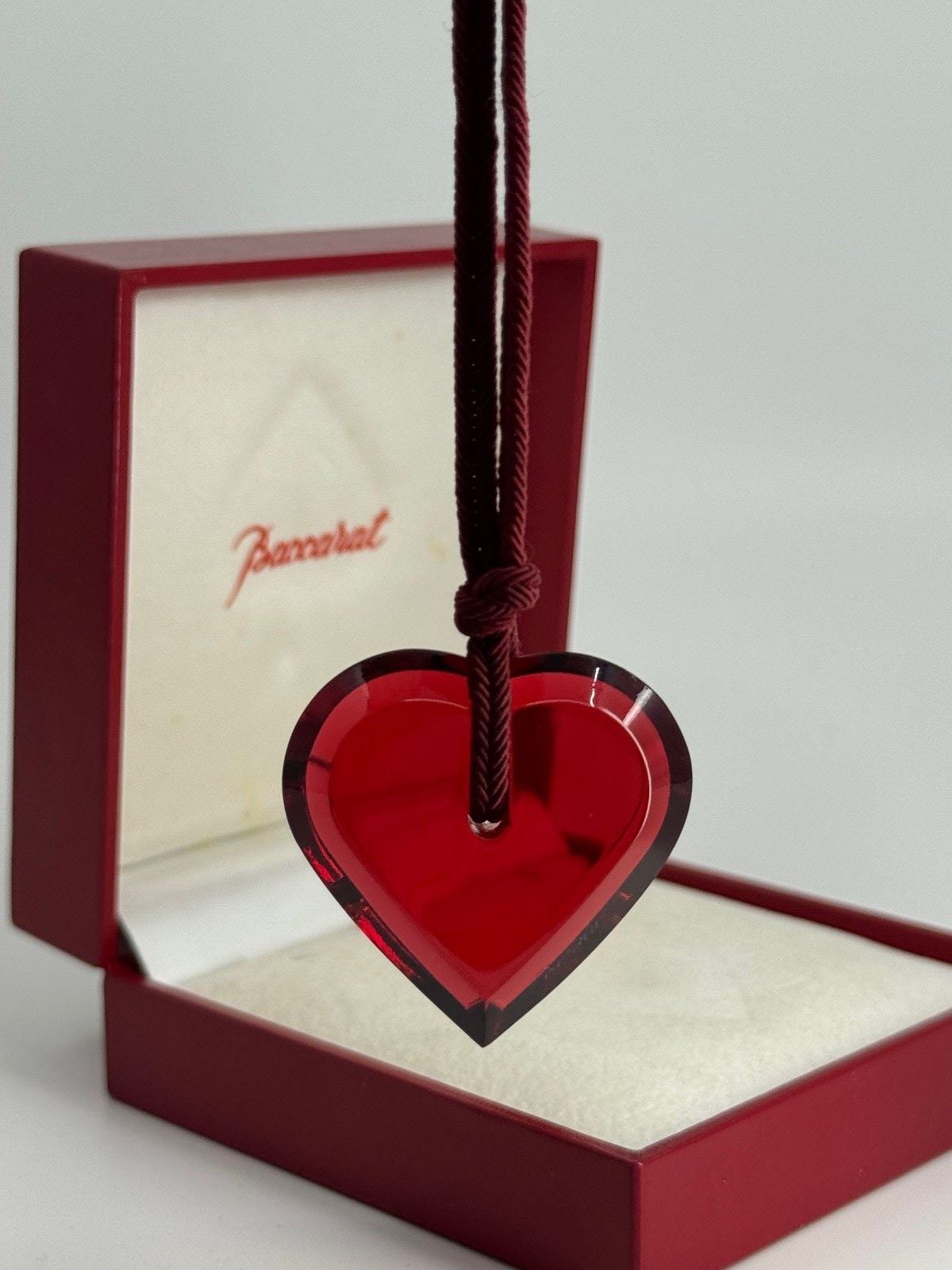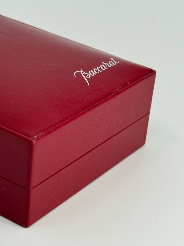 The pendant, that is laser engraved Bacarrat on the side, is held on the original red fabric rope necklace strap so you can wear this as a choker, or at a longer length to suit your dress style at the time of wearing.