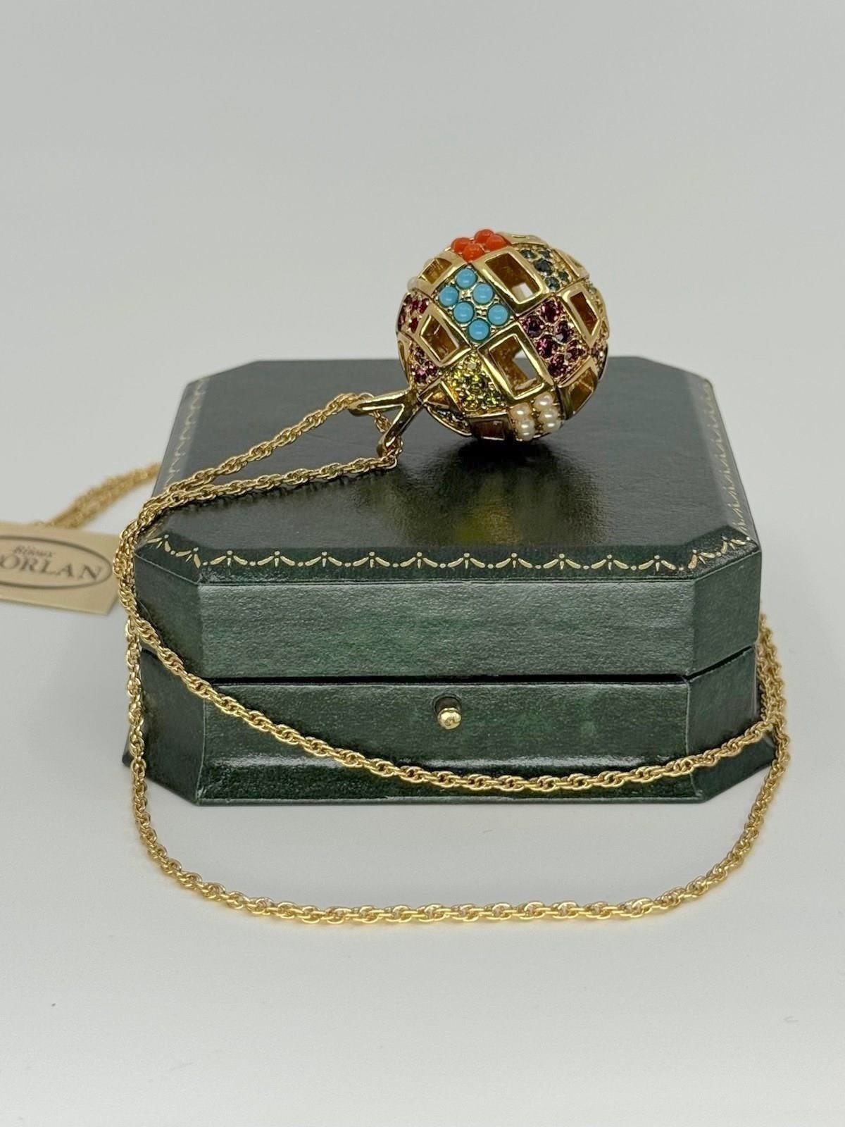 A fun and vibrant vintage 1980s D'Orlan multi-coloured ball pendant on original gold plated finish rope chain, that secures with a signed tag and lobster clasp. Also still attached is the original D'Orlan label and we believe this necklace has never been worn.