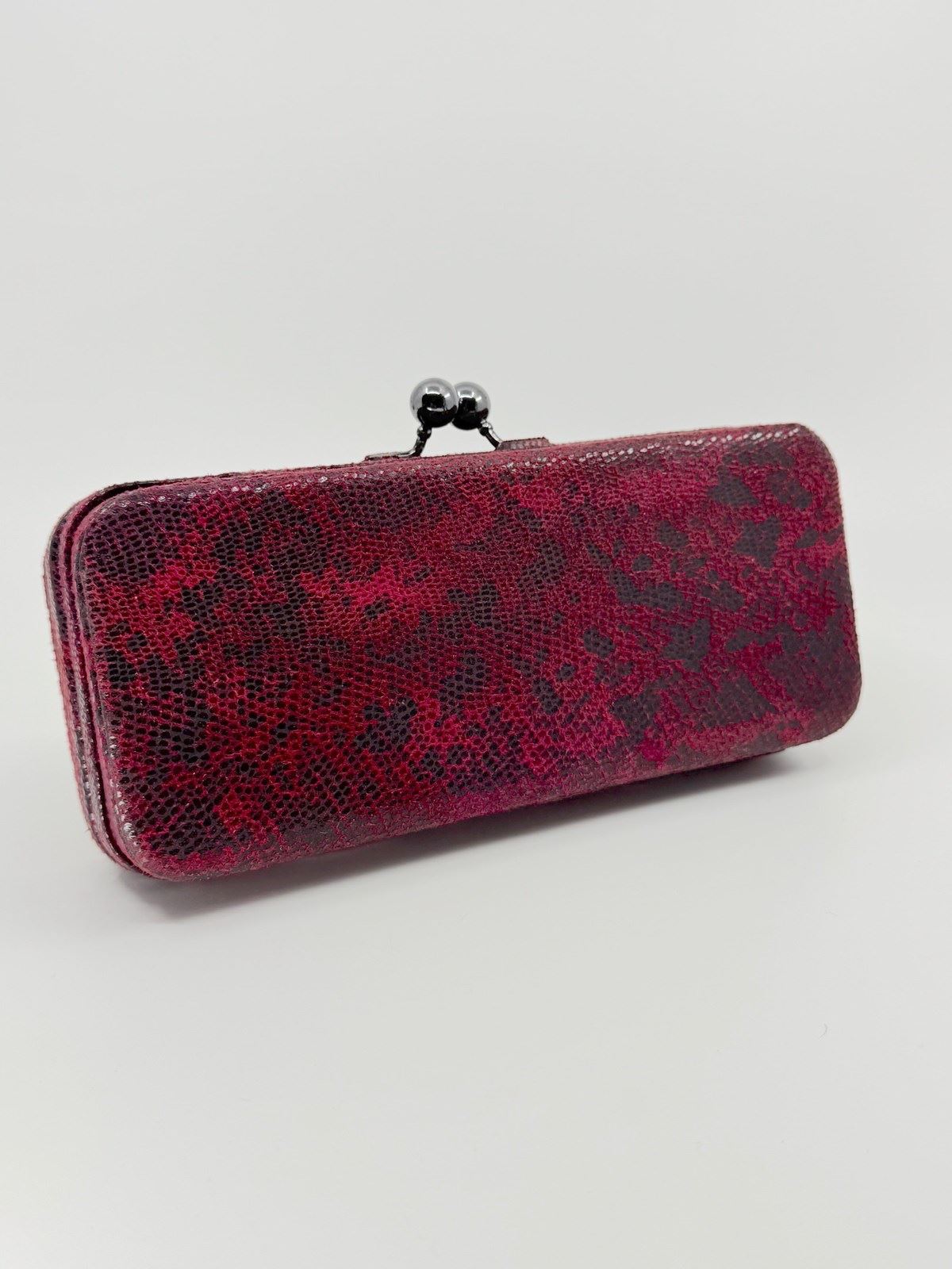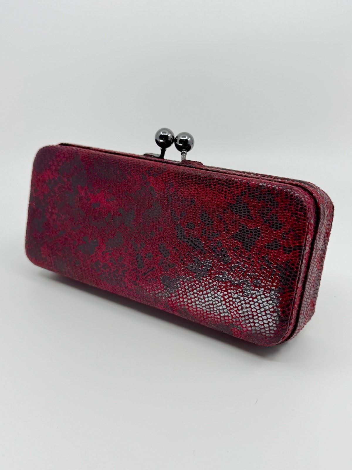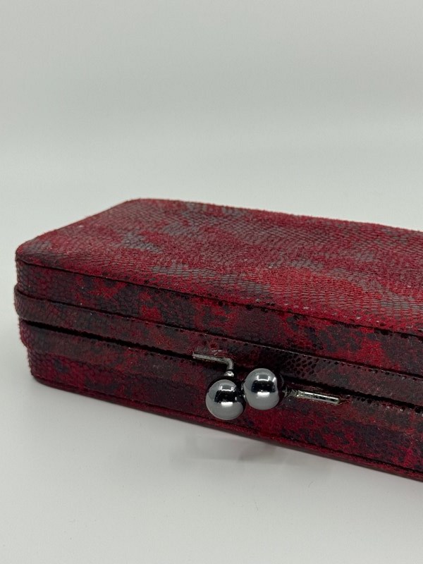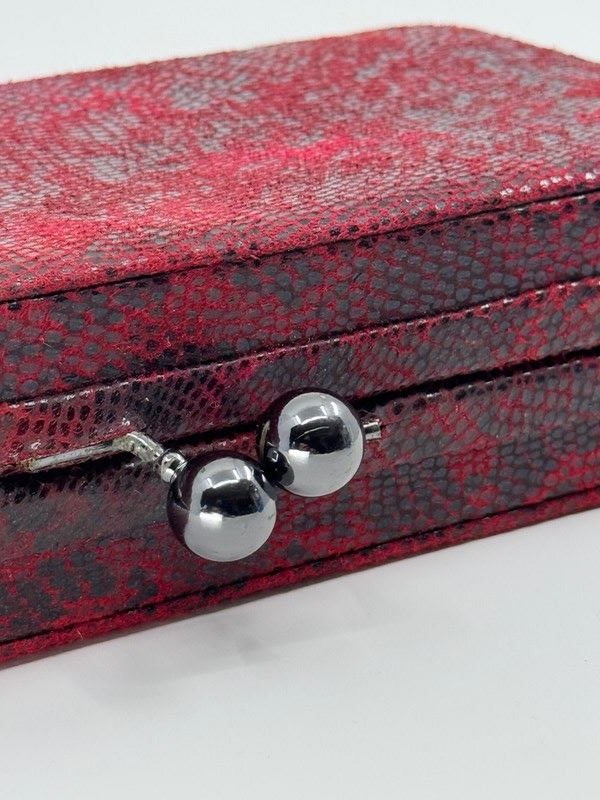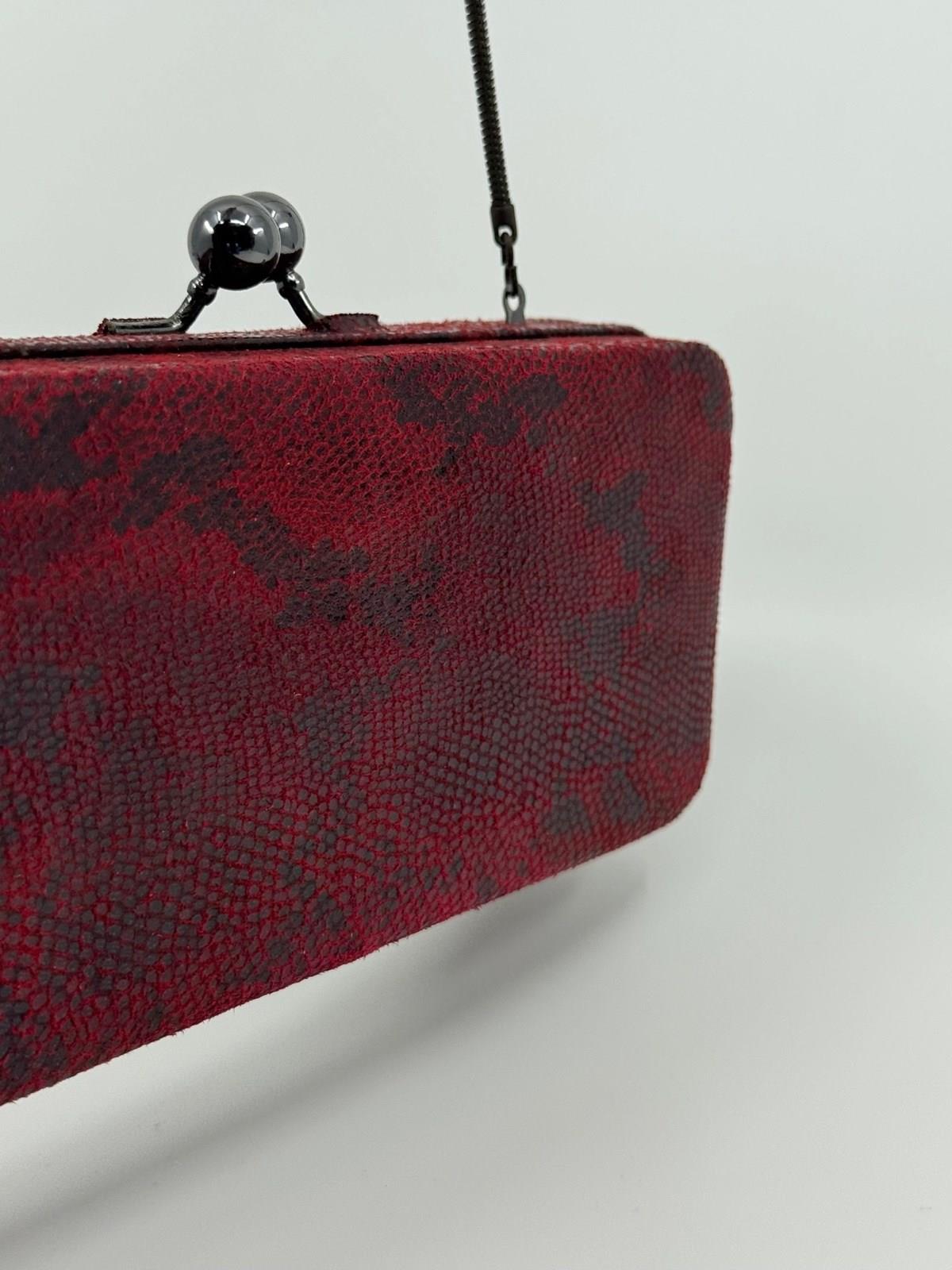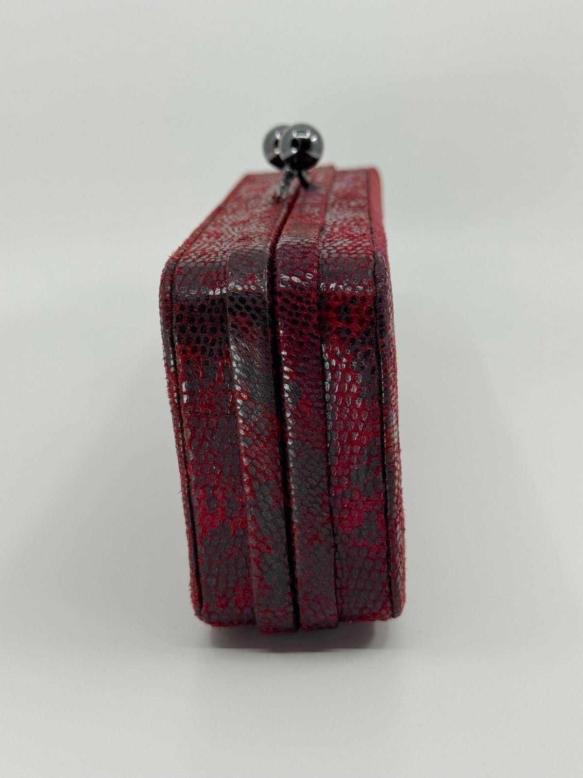 An unusual find with this French Connection faux red and black snakeskin handbag. The design is unlike what we believe are the later pieces, which are more python skin like, as this is a more subtle styling, but with an interesting and tactile grain.