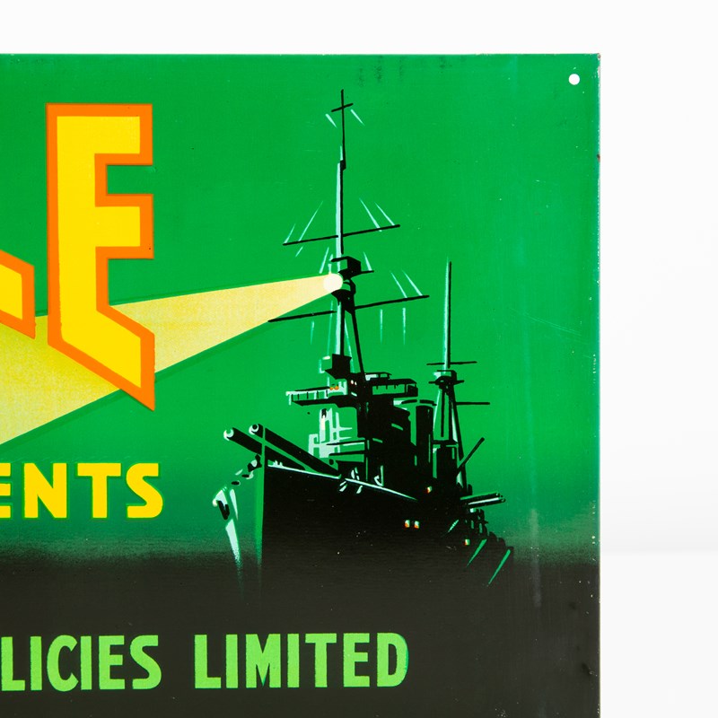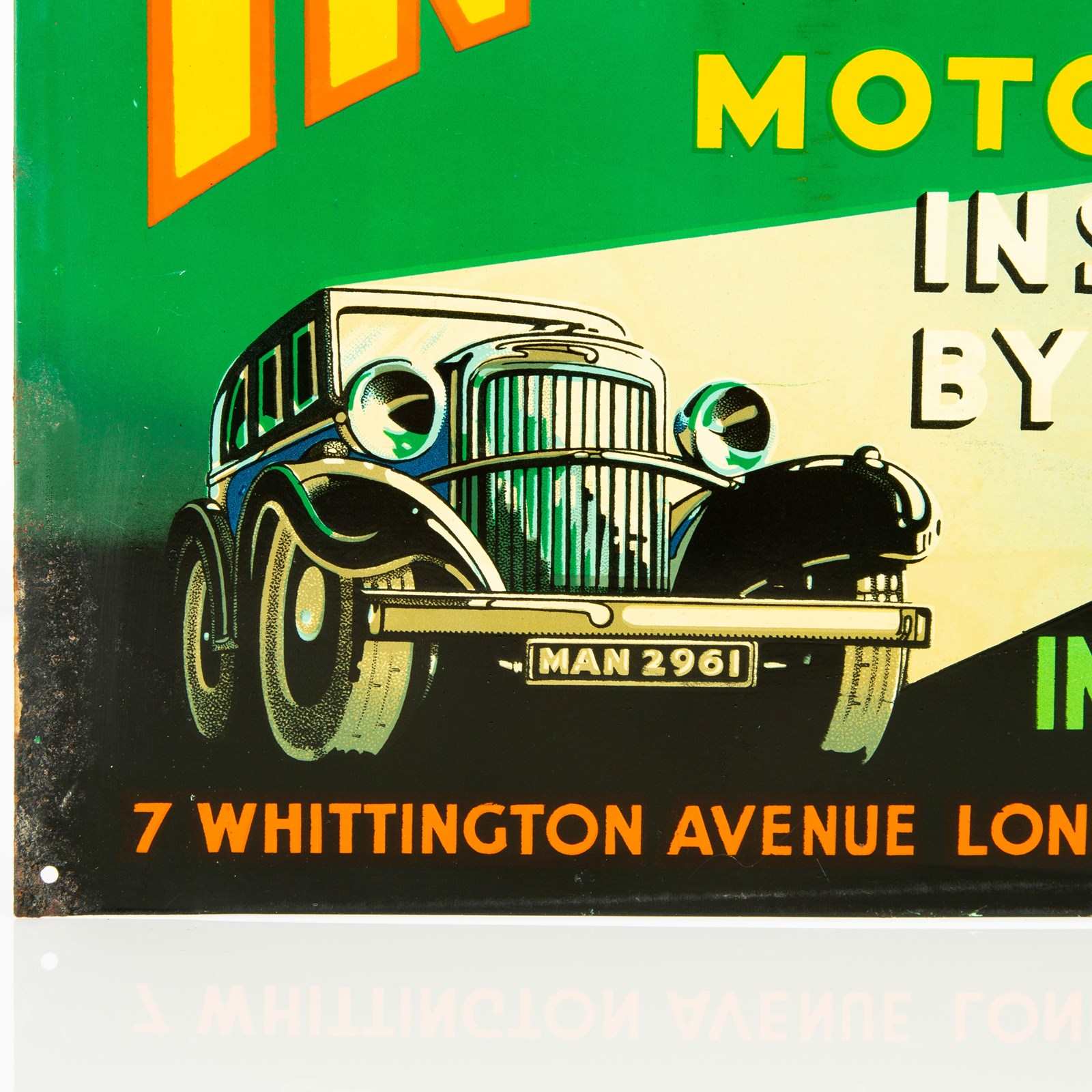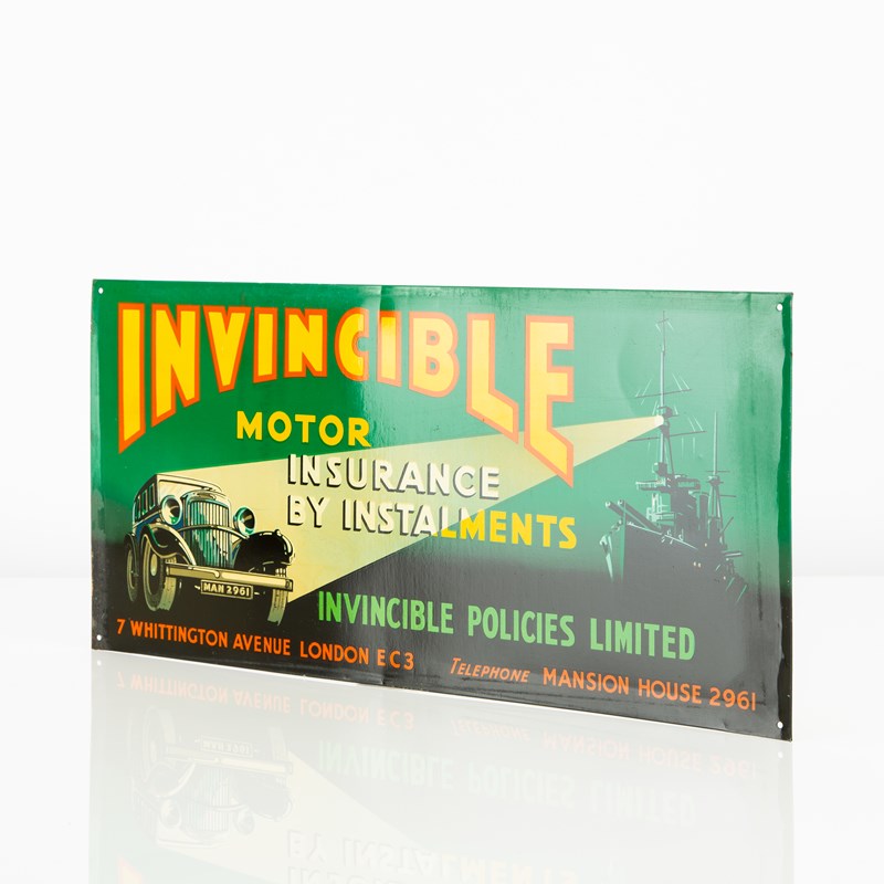 Here we have a particularly good example of one of these 1930s litho-printed tin signs for Invincible Motor Insurance.