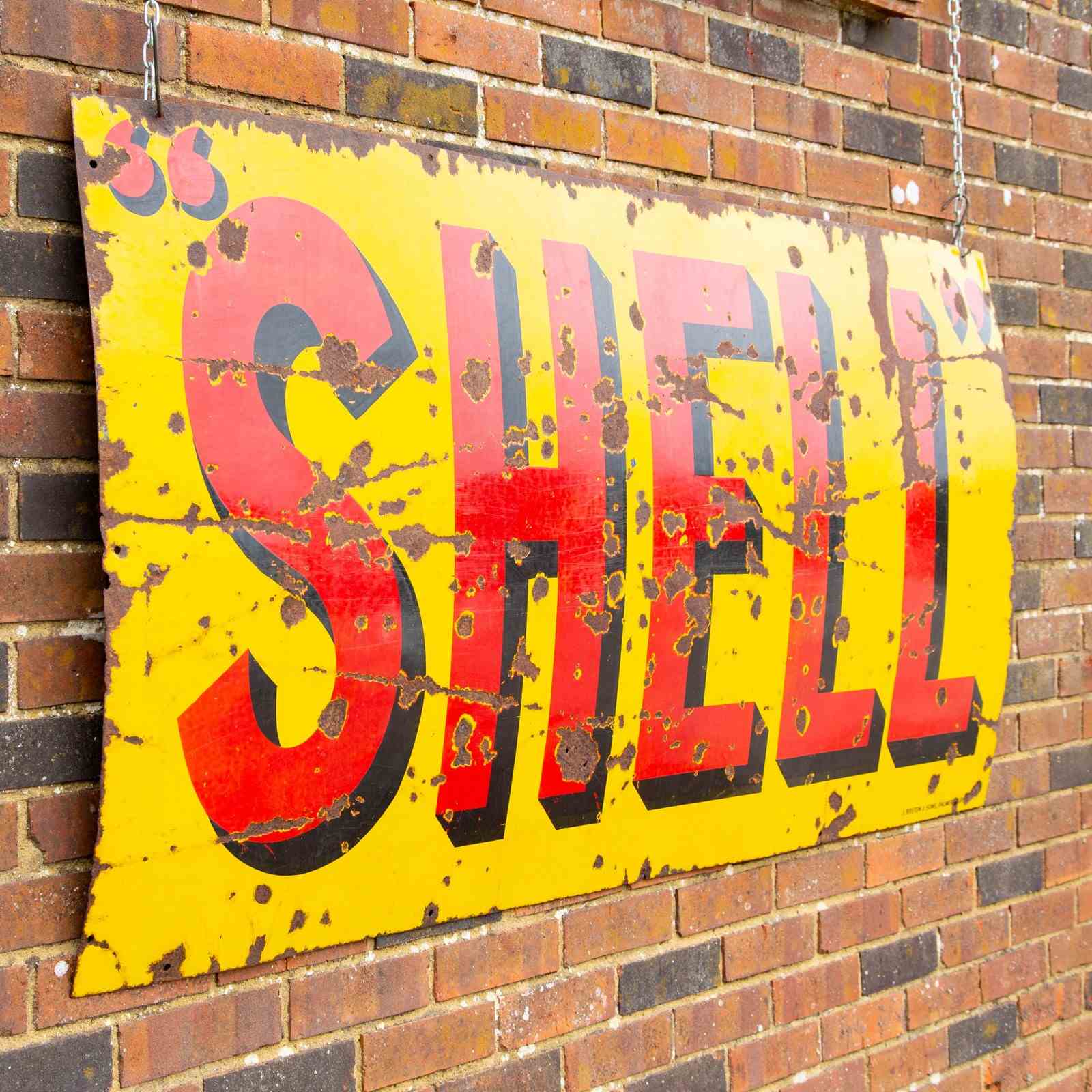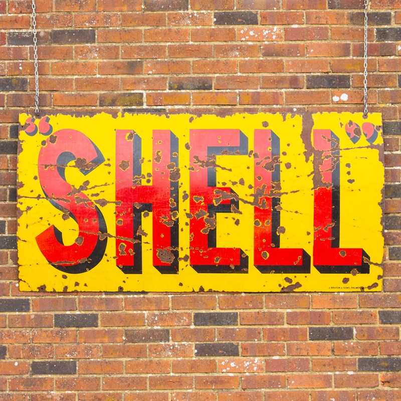 A real statement piece of early automobilia. This 6ft wide x 3ft high "SHELL" enamel sign is bold.