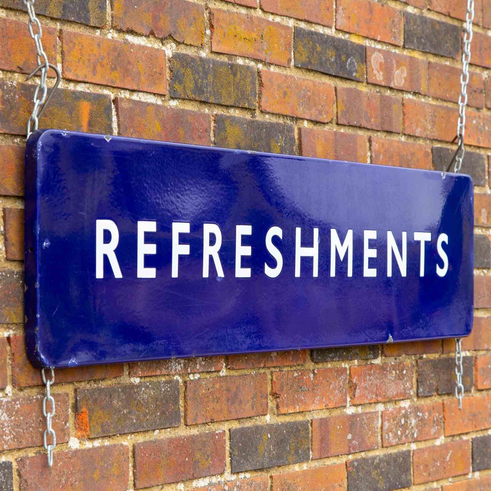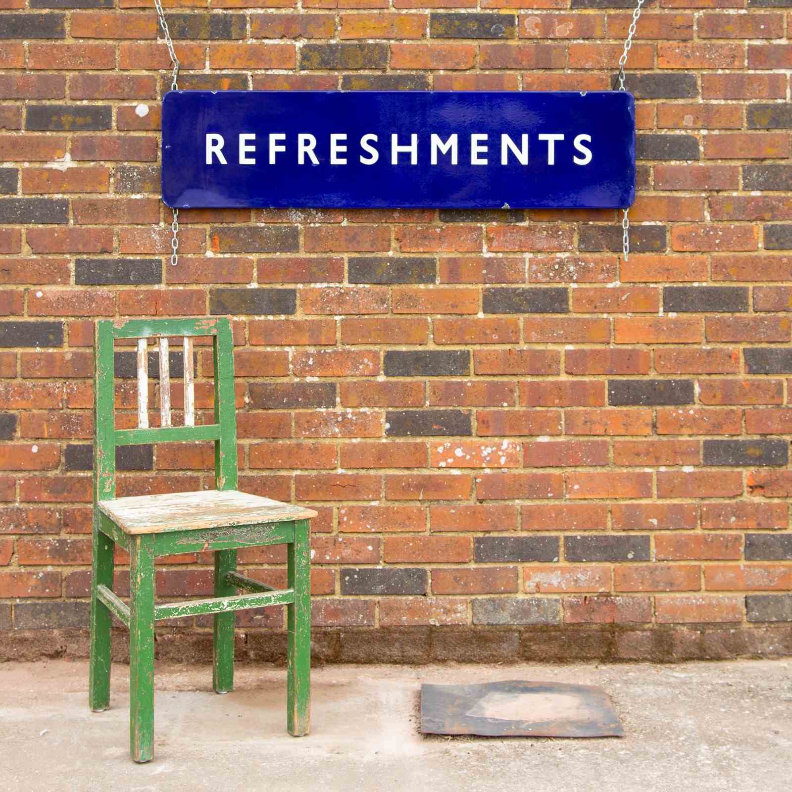 This sign is single sided - it would have originally been back to back with another sign of the same format so that it could have hung from the middle of the platform/station and been visible on both sides. It now hangs neatly against a wall. 'Refreshments' is one of the more unusual subject matters and a perfect for a kitchen / cafe / restaruant where it can be both functional and decorative.
