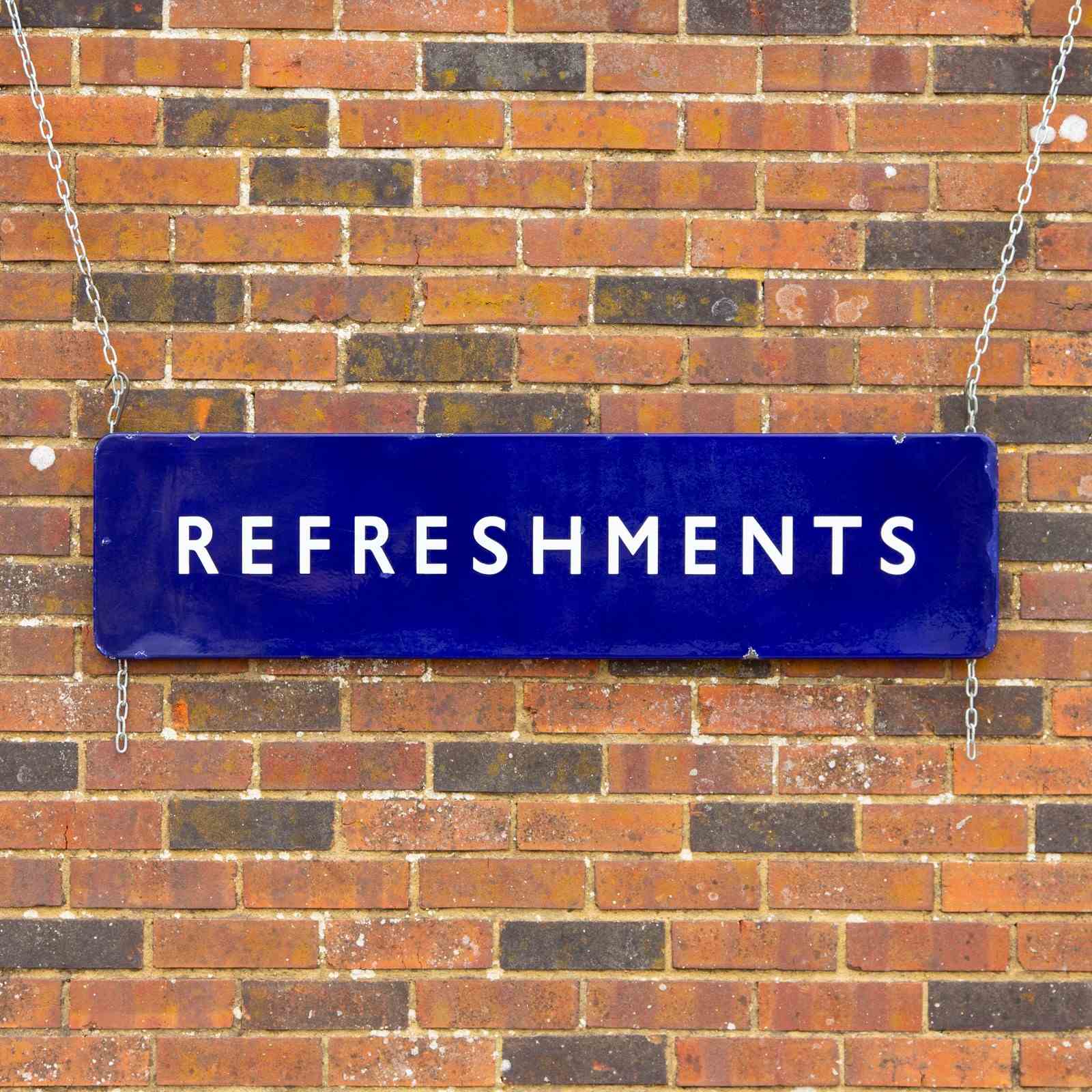 This lovely 'Refreshements' enamel sign comes from the Eastern Region (identifiable by it's dark blue background colour) of the British Rail Network and dates to the 1950s. British Railway's enamel signs are very iconic and combine simple, clear typography with vibrant colours and have their lovely rounded edges.