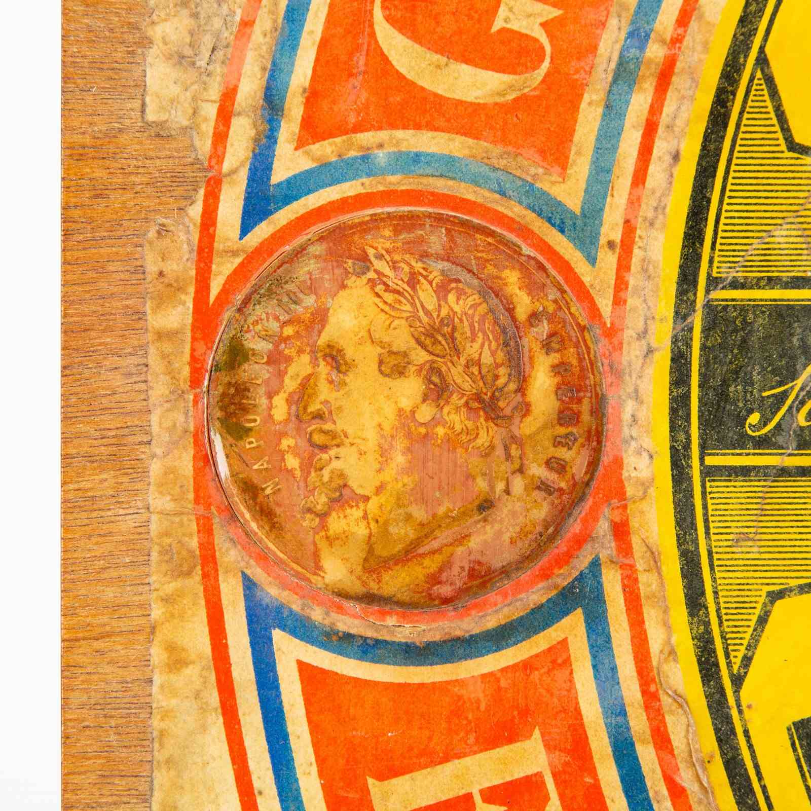 There is a stuck on badge of "Napoleon Emperor" on the left side of the label - presumably related to the Paris Gold Medal claim. A round place holder on the opposing side remains blank.