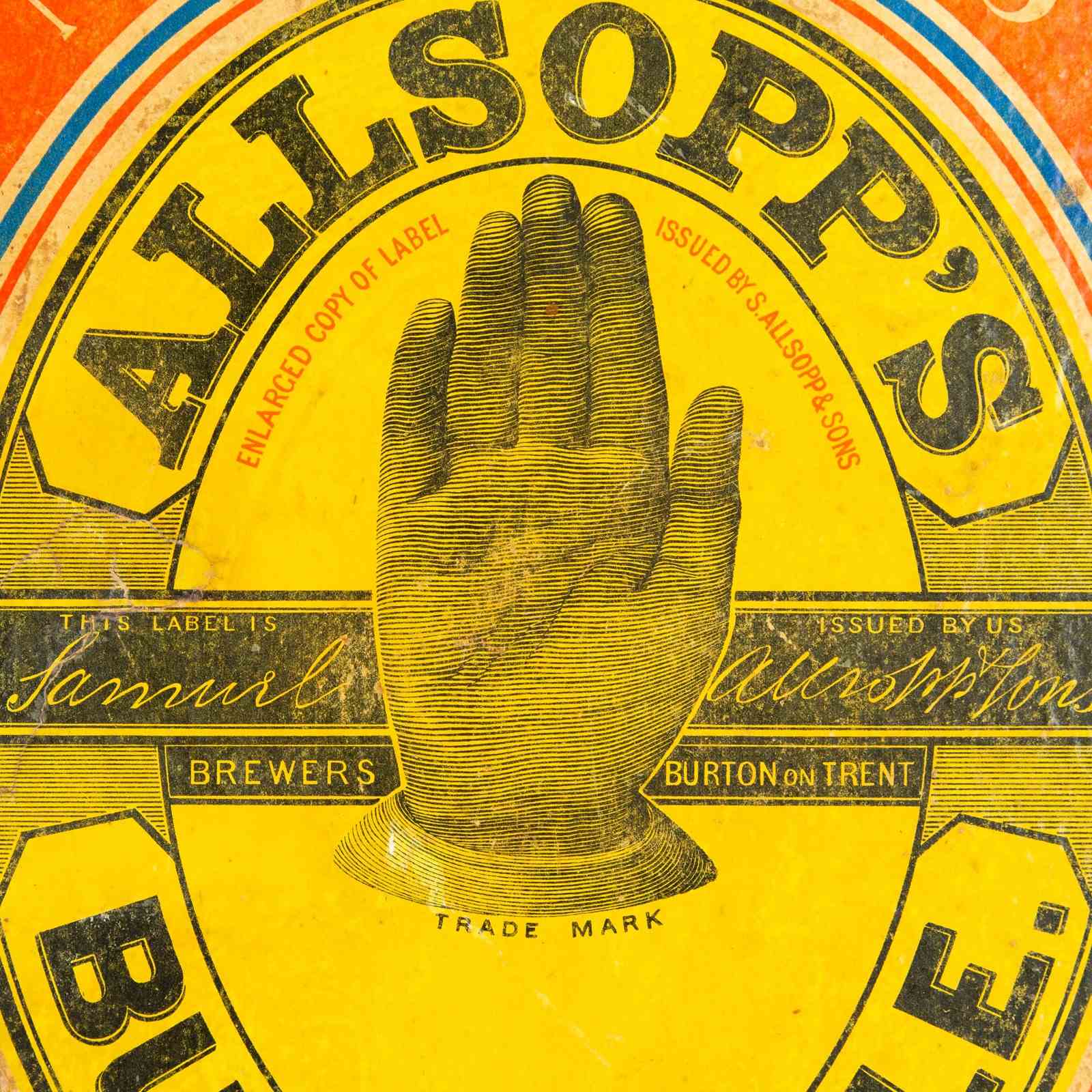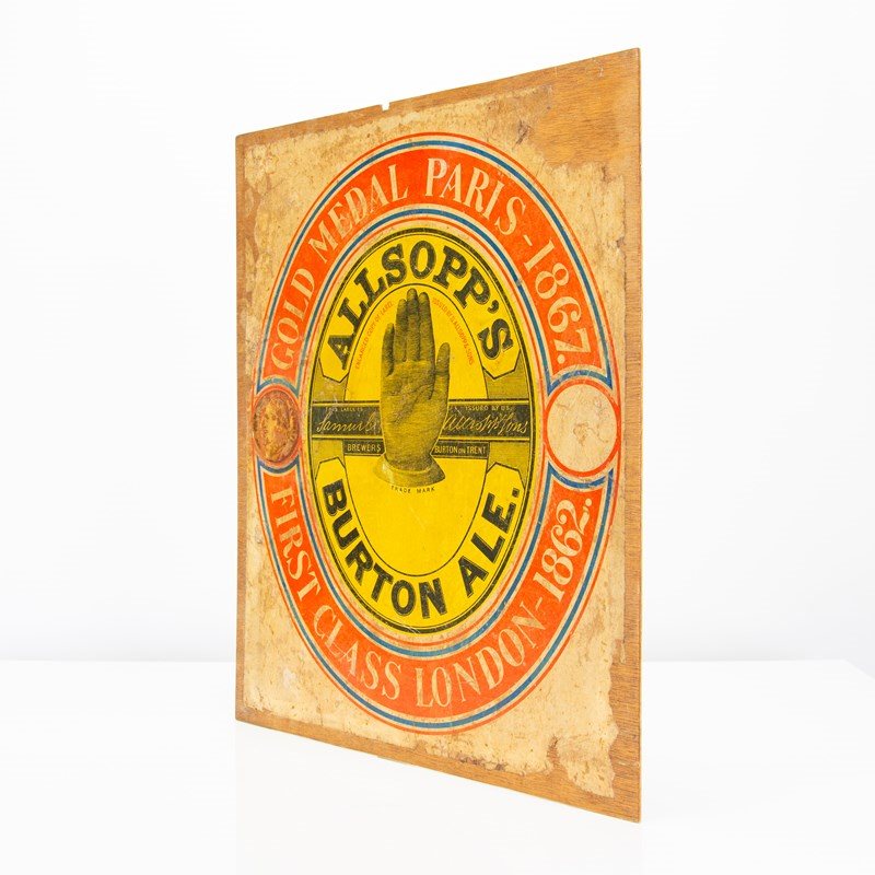 He we see a late 19th / early 20th century poster from the brewery - produced during the era of Samuel Allsopp & Sons. The design, an enlargement of a beer bottle label, is wonderfully eye catching and features the raised right hand that later becomes synonymous with Ind Coope's advertising.