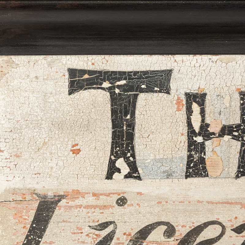 From the subject matter to the wonderfully embellished lettering to the beautifully aged craquelure surface; this sign has it all.