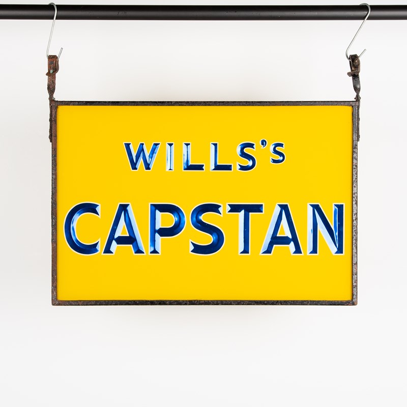 An incredible survivor, this Wills's Capstan (cigarettes), double-sided glass hanging sign is a fantastic example of how mesmerisingly effective advertising could be in a pre-digital era. No electronics / screens or motors needed for this vibrant, glossy 3D sign...