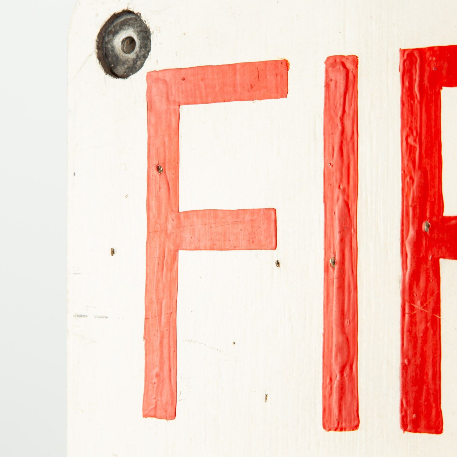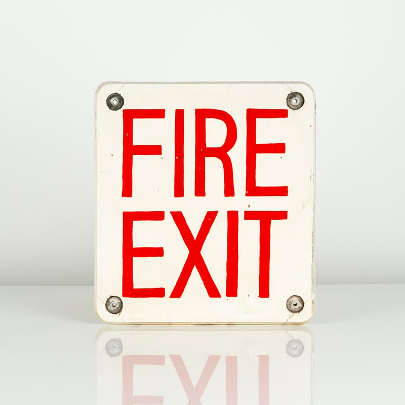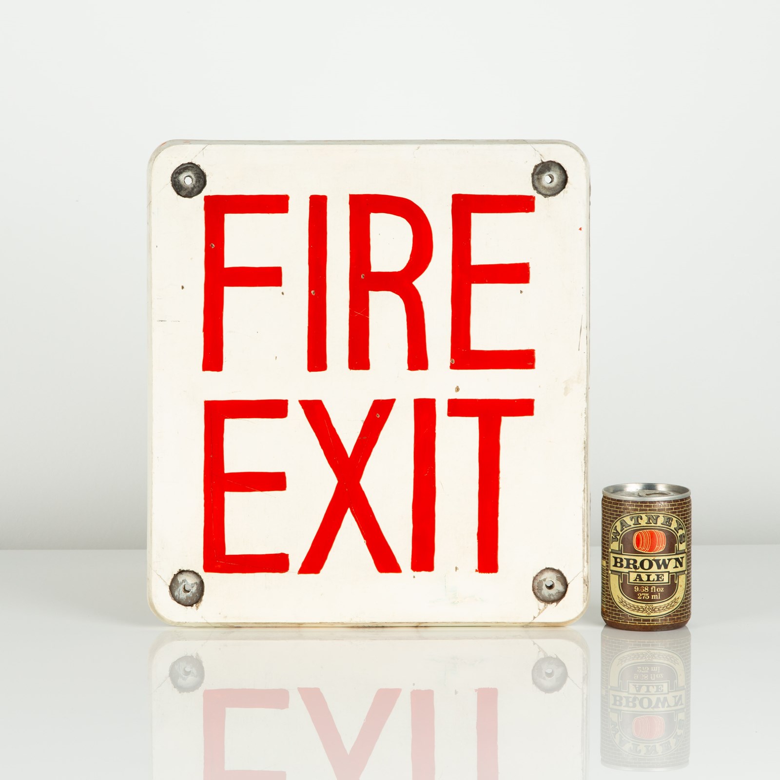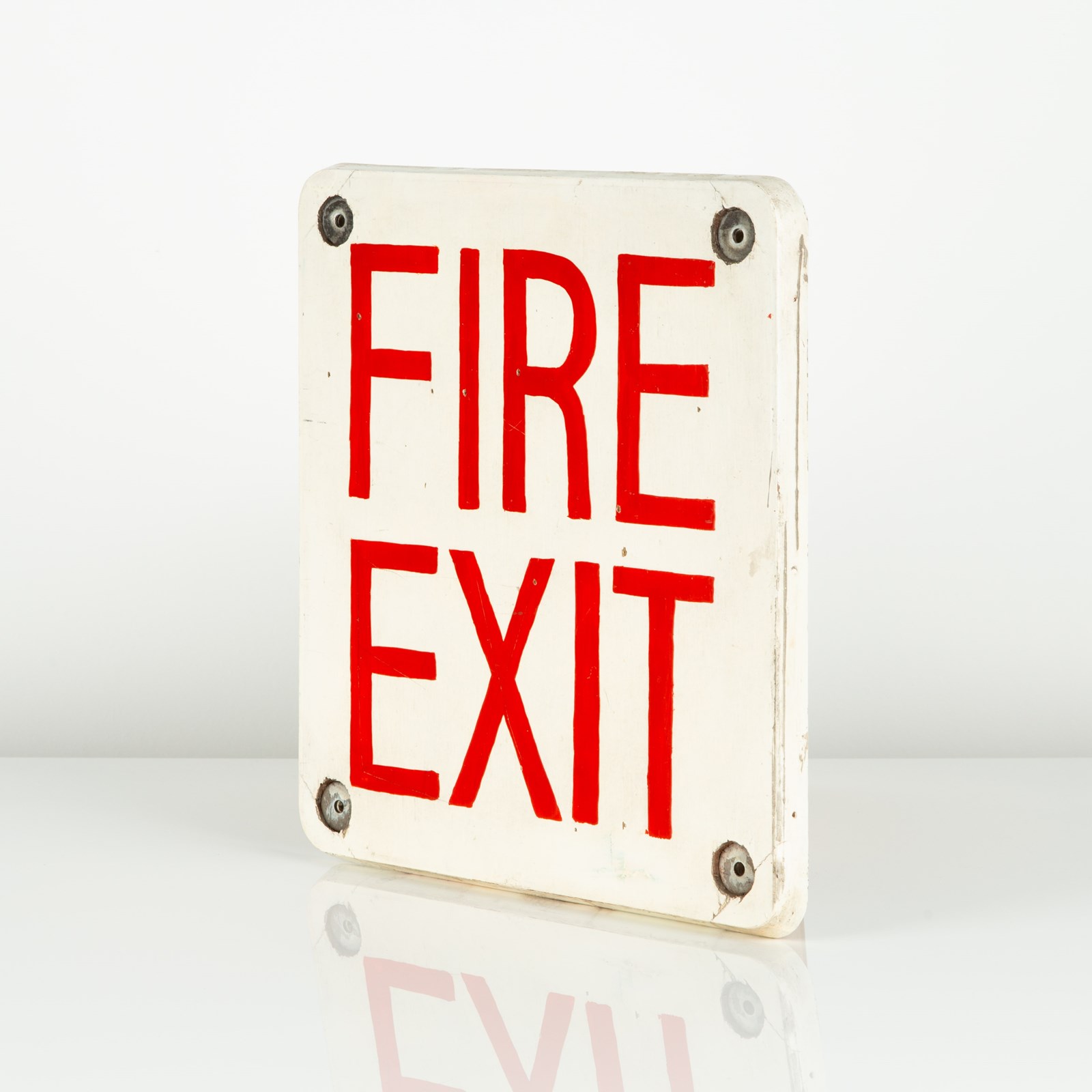 Simple and striking. This 'Fire Exit' sign is hand painted on a thick piece of board.