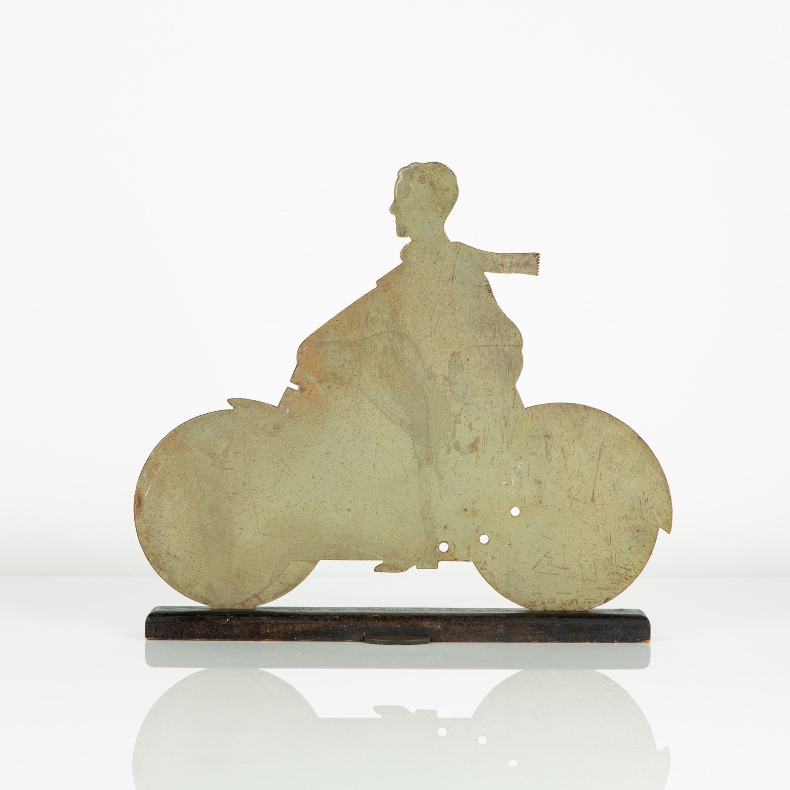 A rare piece that's survived the years in very good condition, still mounted to it's original wooden base, the paintwork (probably litho / screen printed) is fully legible, albeit a little faded in areas. There's light surface rust leeching through but all inline with what would be expected with an original example from this period.
