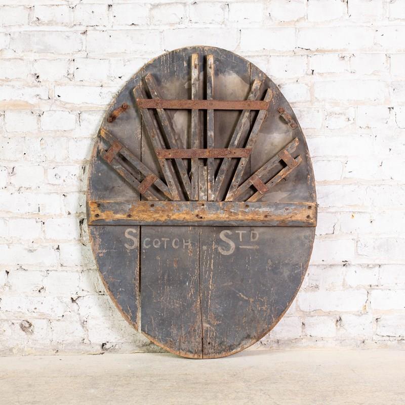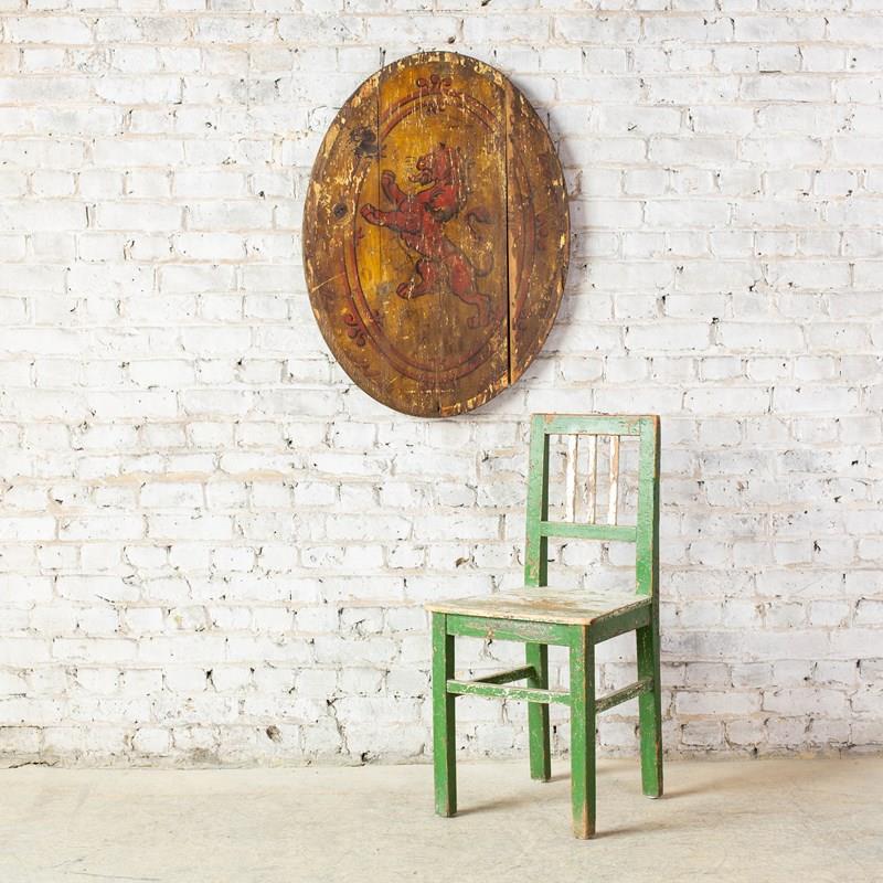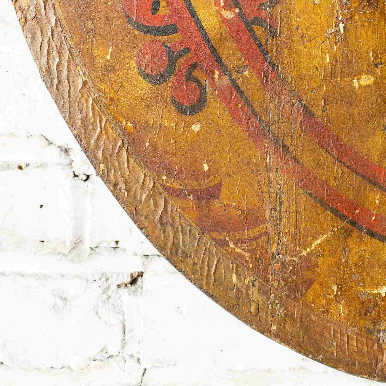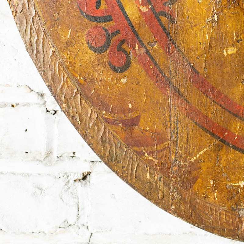 It probably dates to the early 20th century and shows fairly heavy signs of wear, with the painted surface dirtied, scuffed and scratched and a split between the wooden boards - although this could be improved upon I love the feel of faded grandeur that it's bought to this piece; dark and rich with the details still there upon closer inspection.
