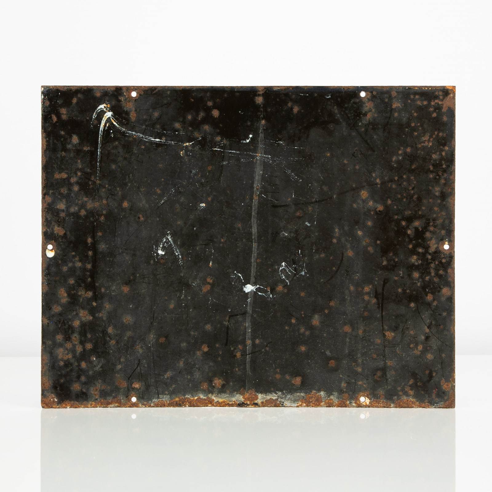The sign is likely to date to the 1930s / early '40s and has survived the decades in excellent order with vibrant colours and a great surface gloss. There are a few small areas of surface corrosion but the sign displays very well. With no enamel loss around the original mounting holes (upper edge) I would speculate that the sign was never hung and that the surface corrosion may have occurred in storage (damp basement / similar?).
