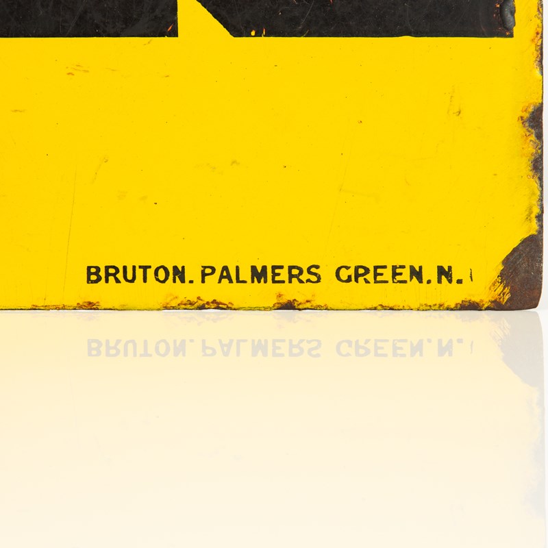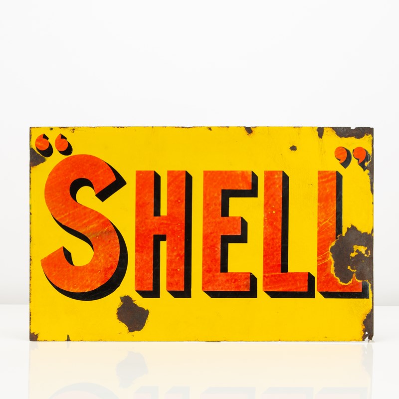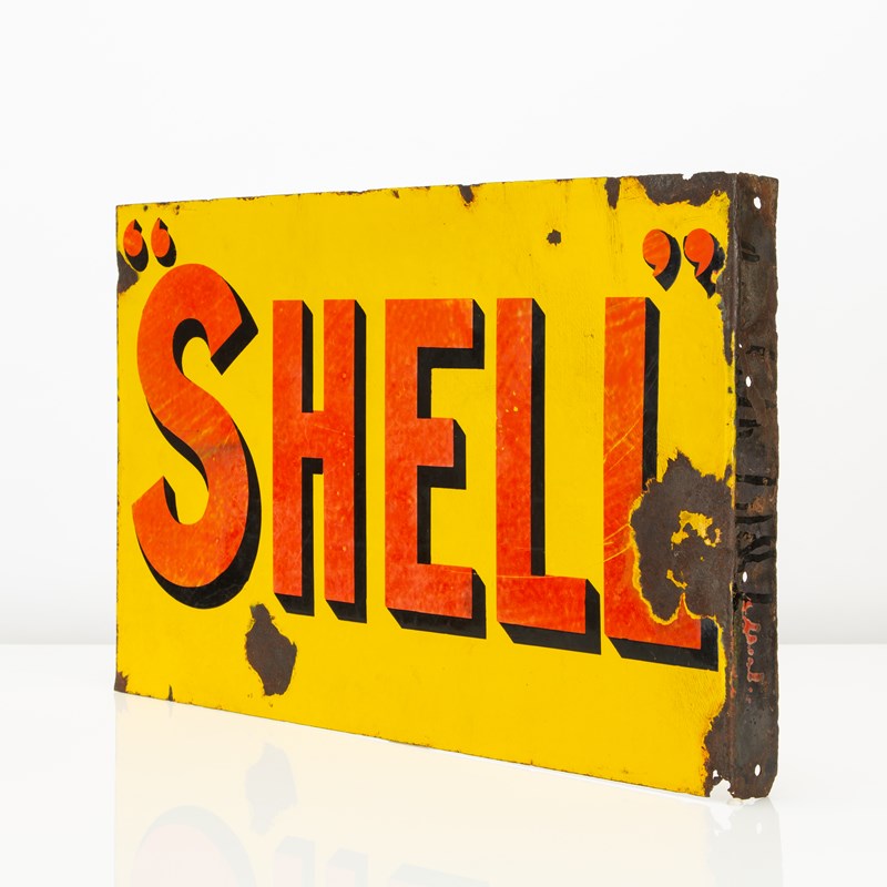 A lovely, early piece of automobilia - this "SHELL" double-sided enamel flange sign dates to the 1920s/'30s and was produced by the London enamelers; Bruton of Palmers Green.