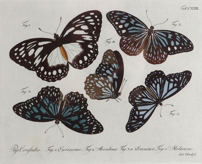 These engravings are from one of the earliest and most comprehensive catalogues of butterflies and insects. The publication was for made for biologists, as well as for aristocrats interested in learning about the latest discoveries. These engravings are not only scientifically accurate but also aesthetically beautiful with their natural shapes, colours and decorative patterns.