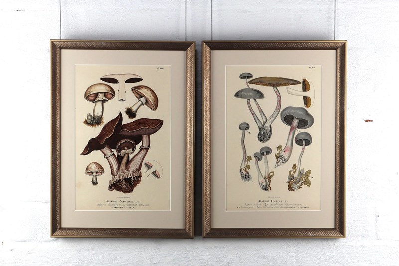 These examples are the field mushroom (plate XVIII) and blue agric (plate XIX) and are presented behind glass in bespoke frames, hand made to conservation standards.