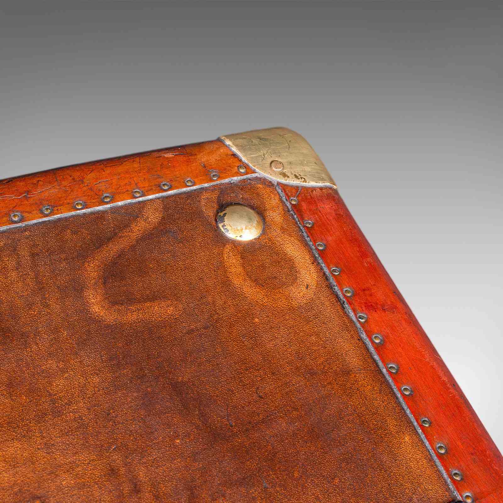 Bound to each corner with brass cappings over beaded leather straps