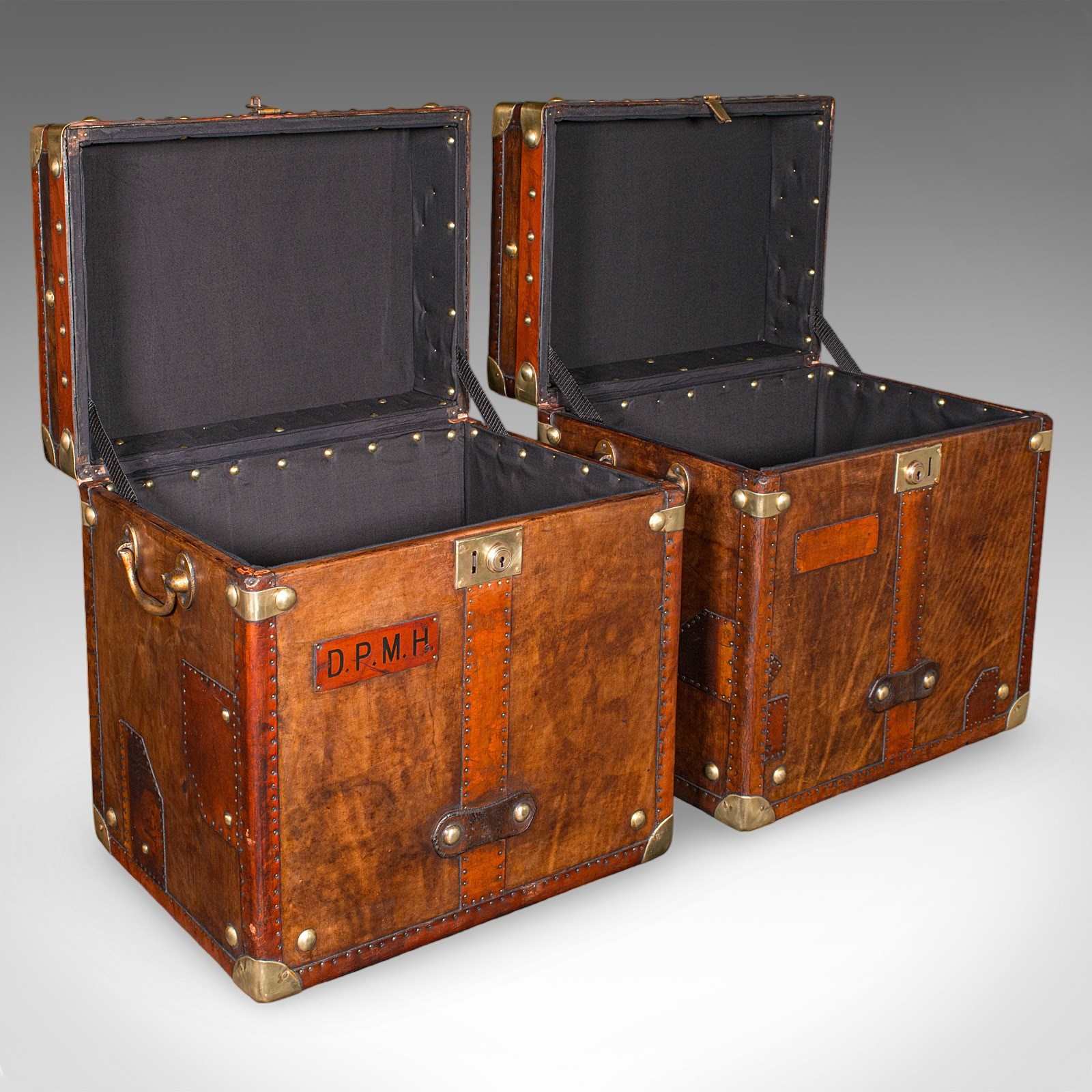Each dressed with a brass slide clasp, with inset lock— keys absent