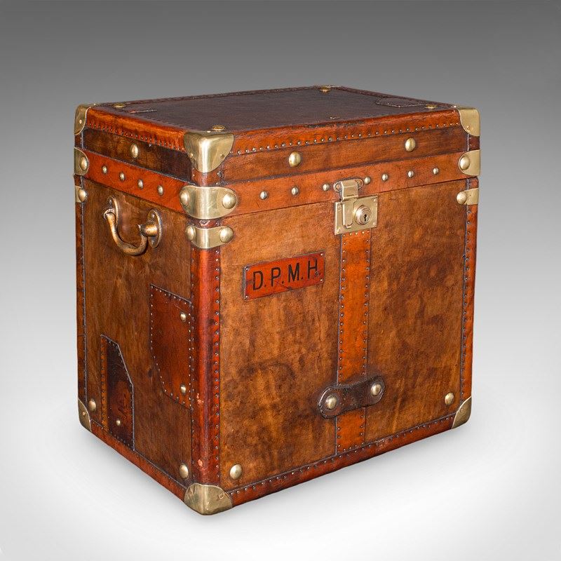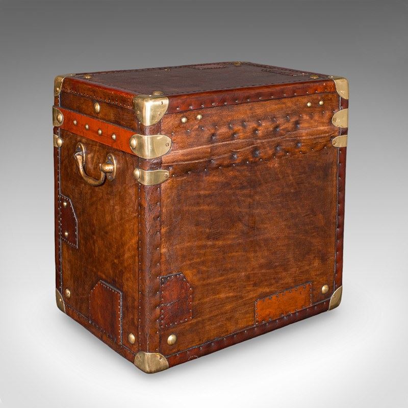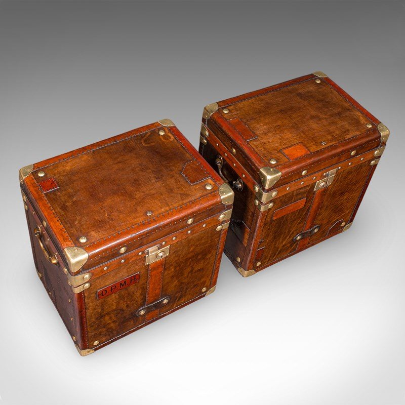 2 Late Vintage Campaign Luggage Cases, English, Leather, Nightstand, Bedside