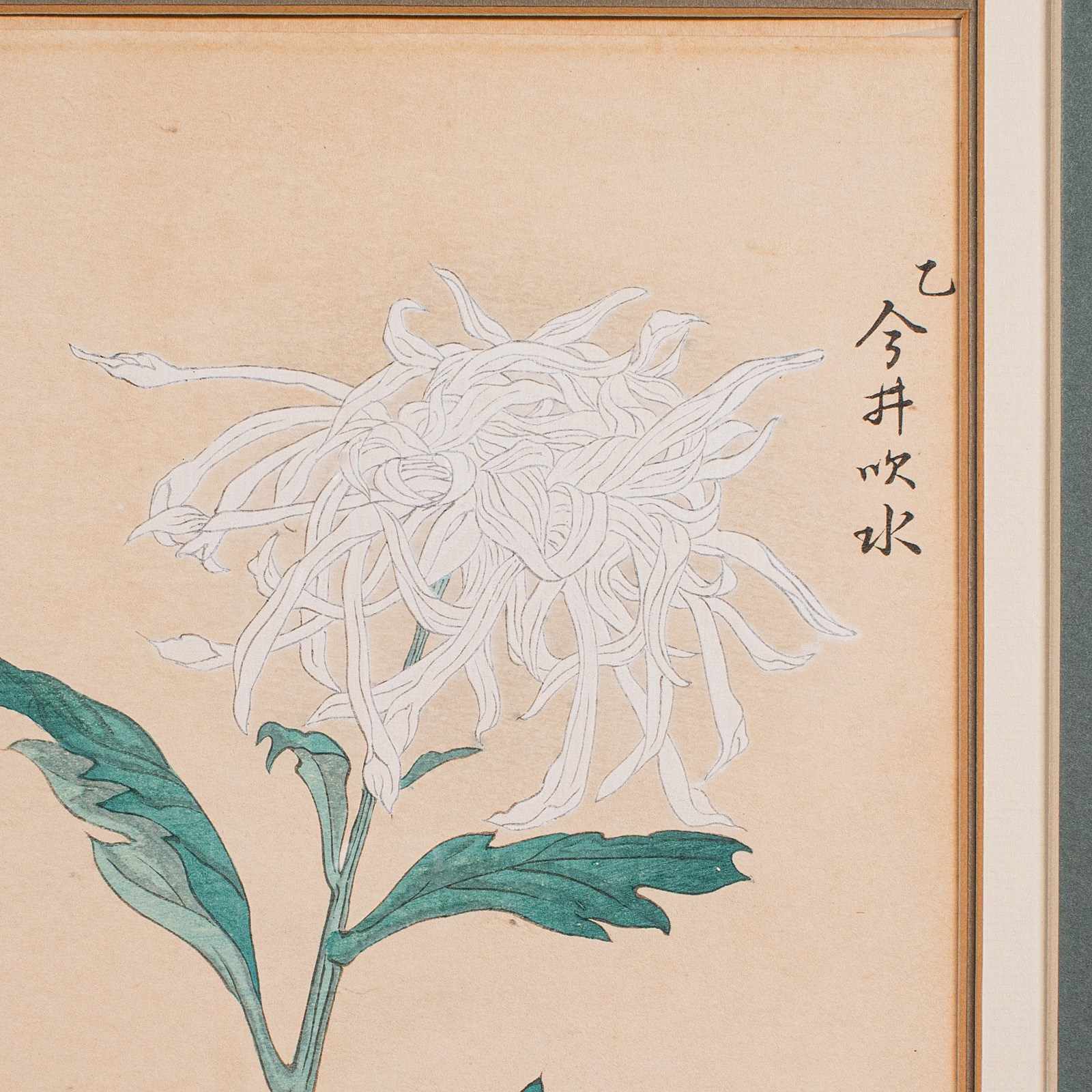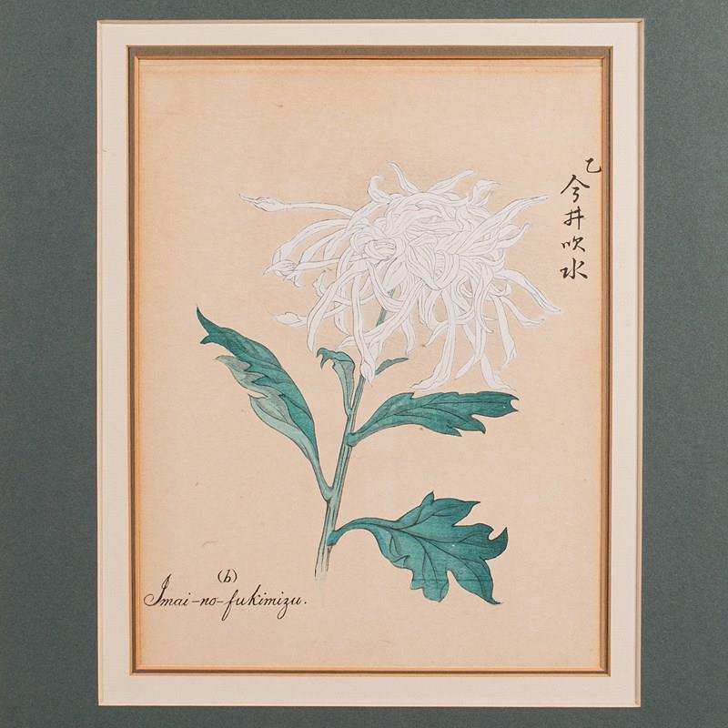 Hasegawa published woodcuts in a series of three volumes known as One Hundred Chrysanthemums by Keika in 1893.