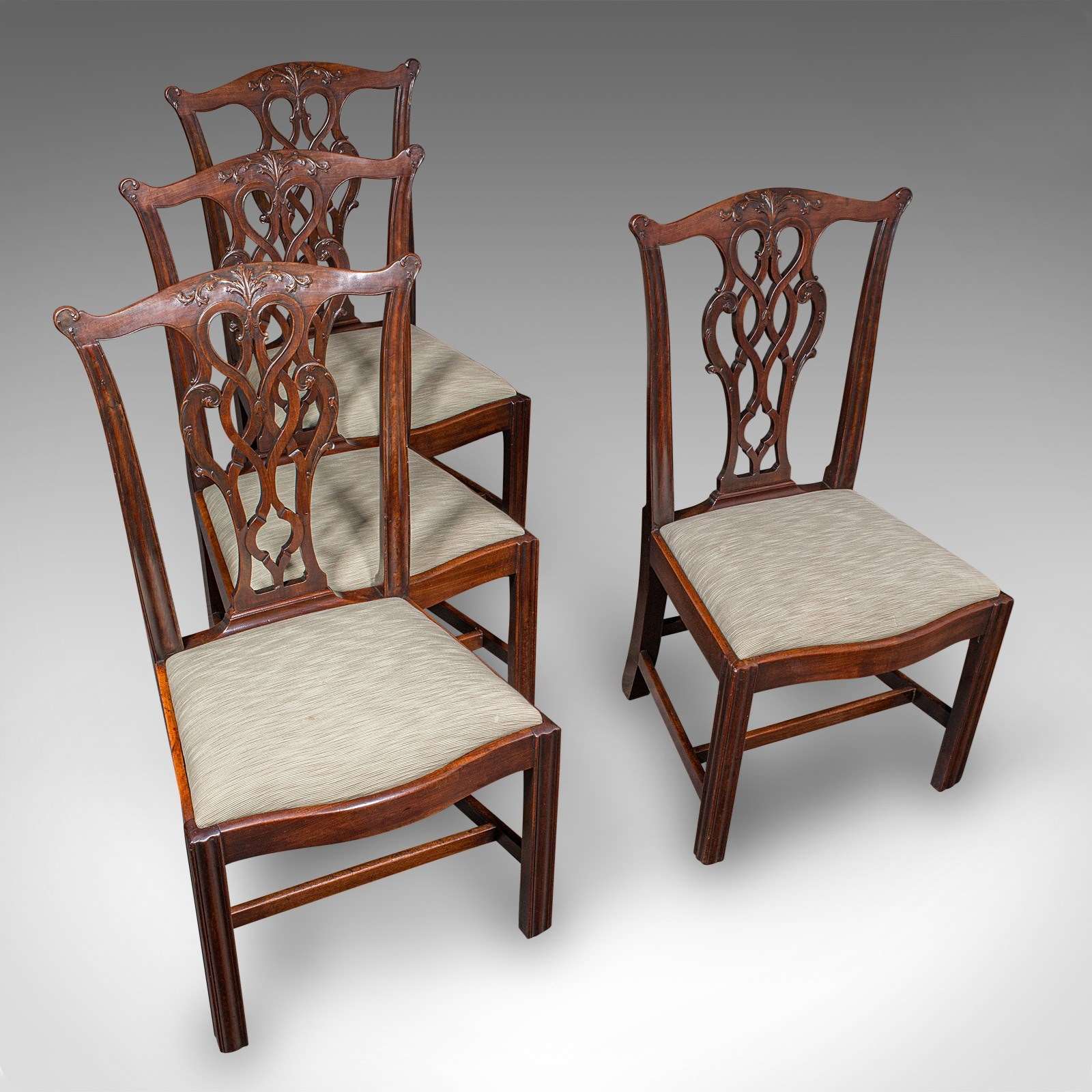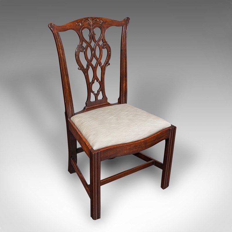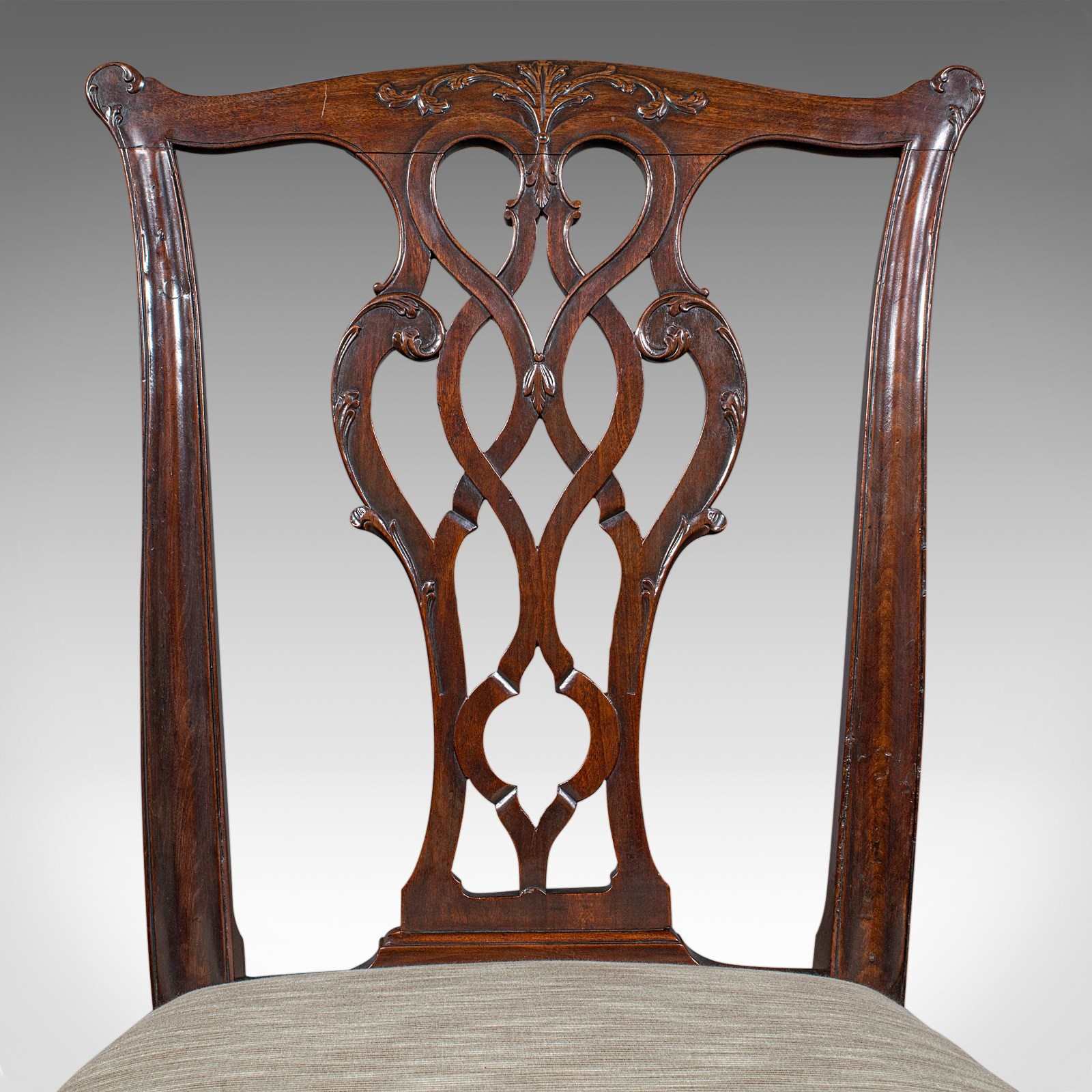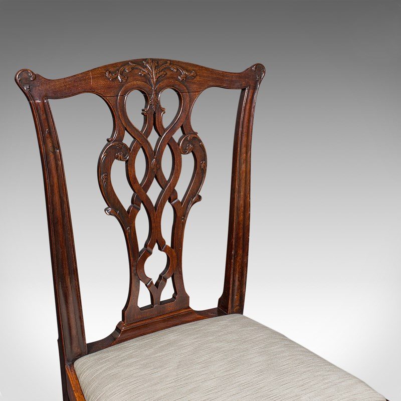 4 Antique Dining Room Chairs, English, Seat, After Chippendale, Georgian, C.1800