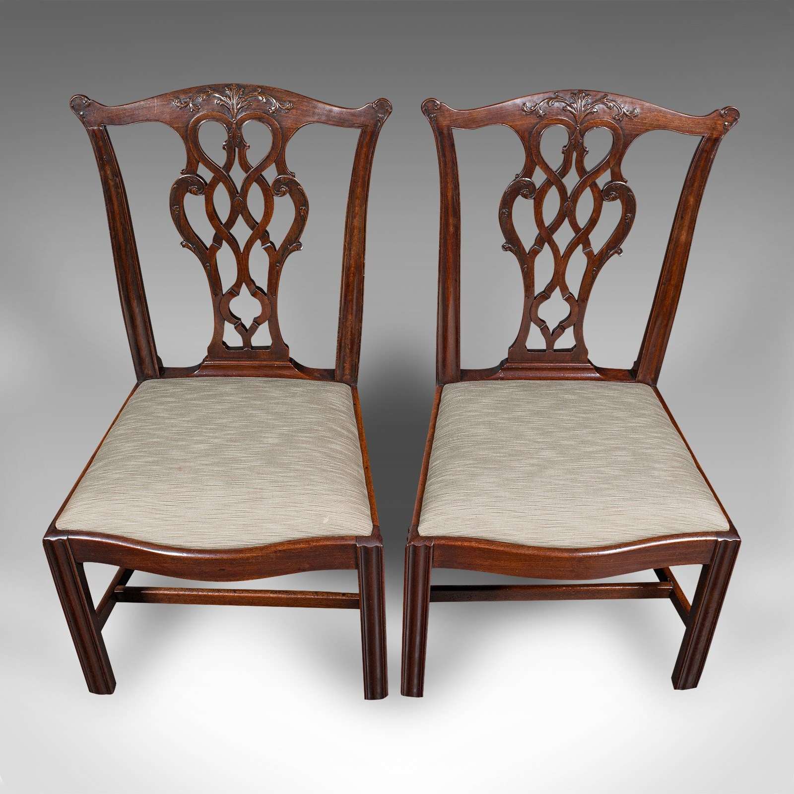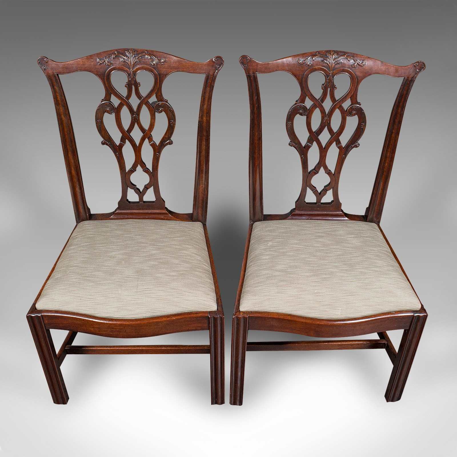 Superb Chippendale revival chairs, with appealing upholstery and generous width