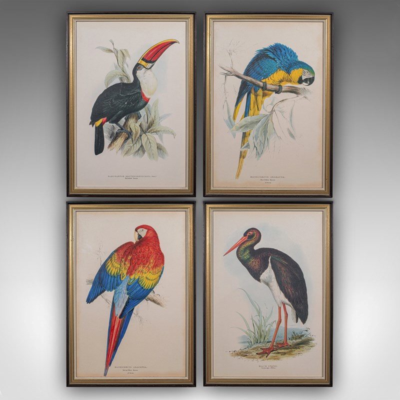 This is a striking quartet of antique exotic bird prints, with quality studies of great detail and colour. Delivered ready to display.