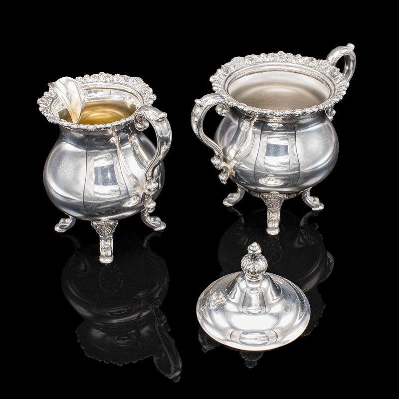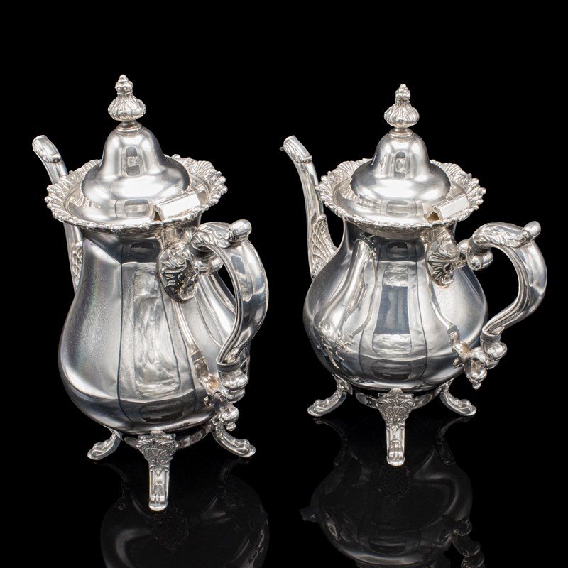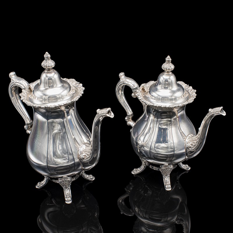 Comprises a coffee jug and teapot, with matching sugar dish and creamer
