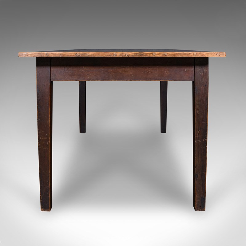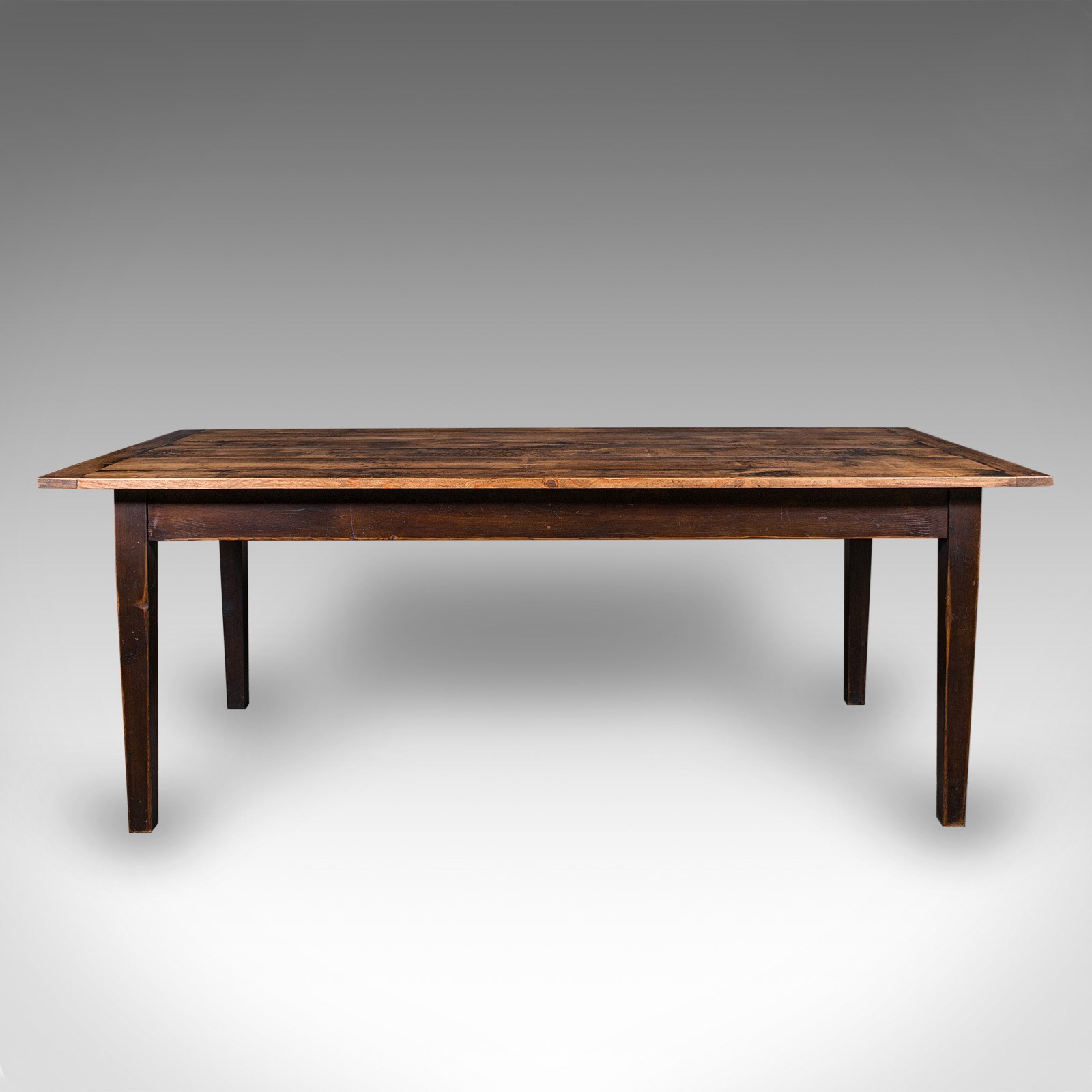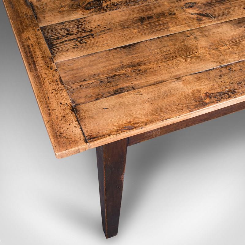This is a large, 6 seat antique farmhouse dining table. An English, pine country house kitchen table, dating to the Victorian period, circa 1900 and later.
