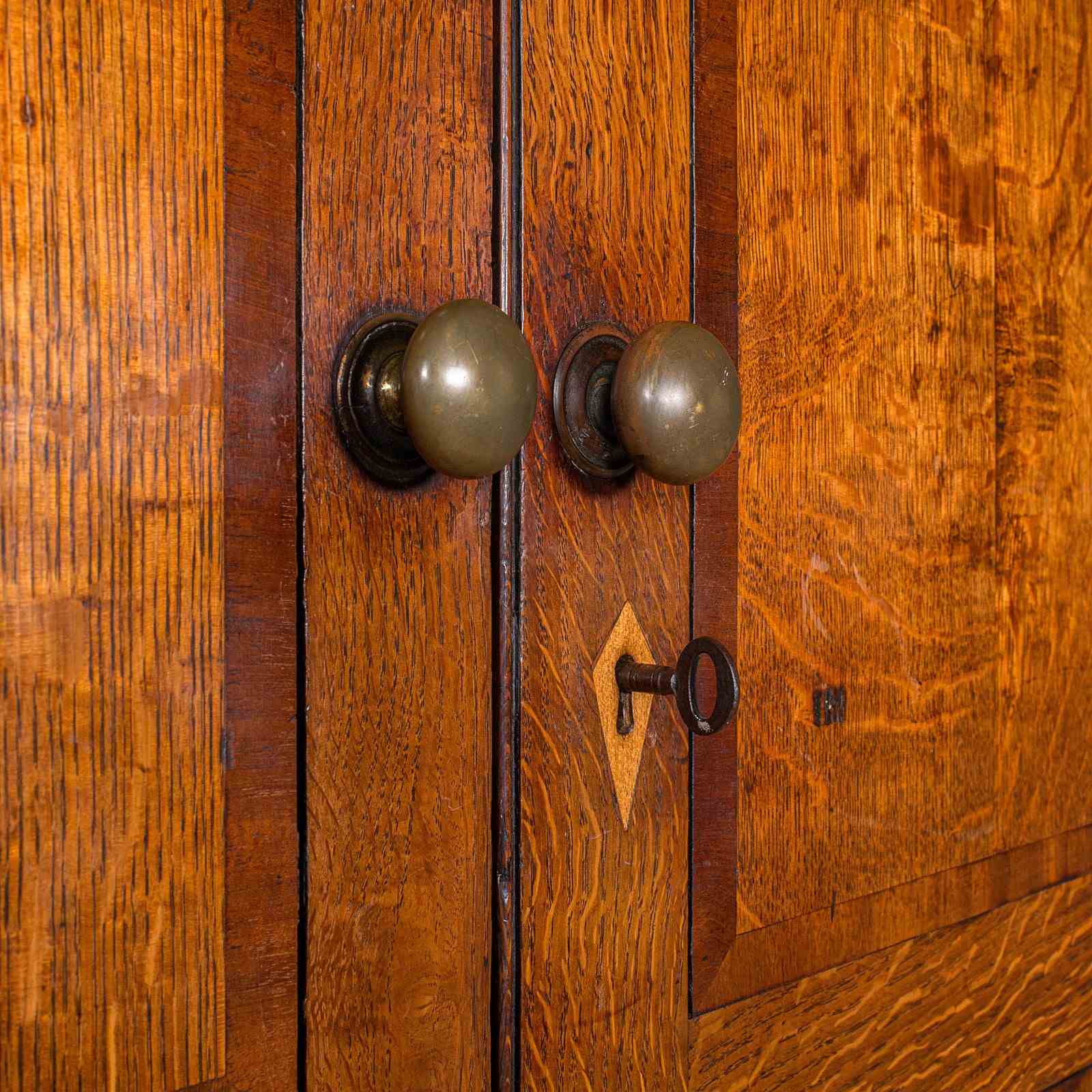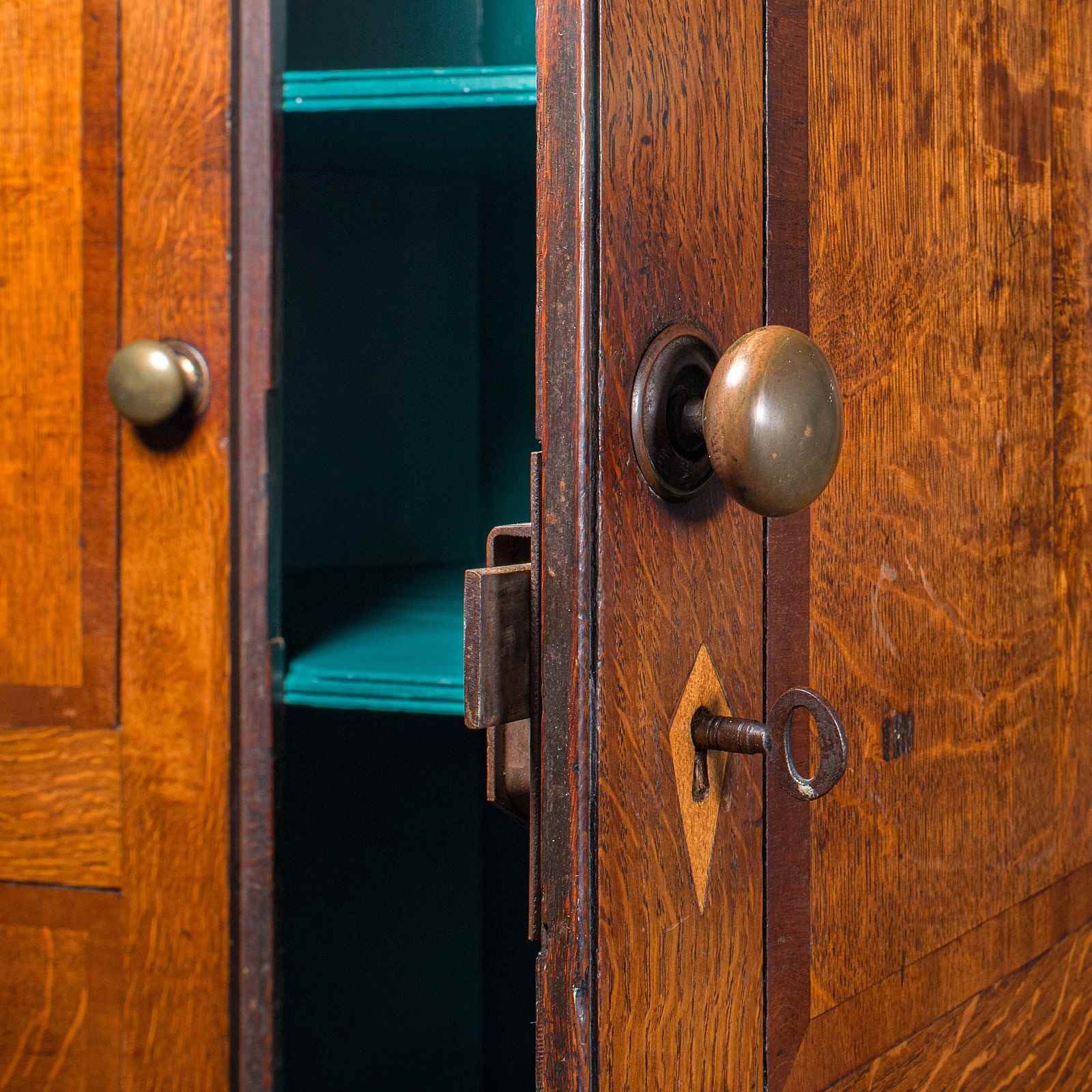 Diamond inlays host inset locks to each cabinet — in working order, keys present