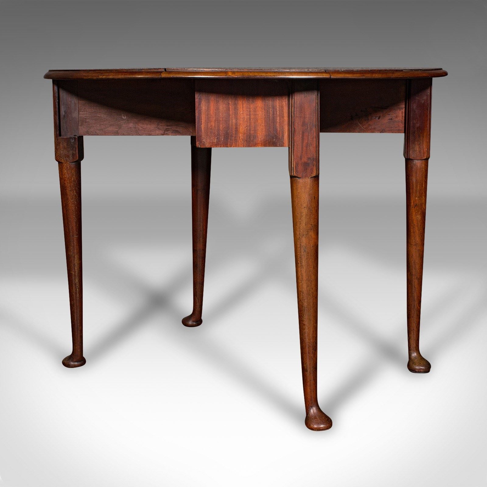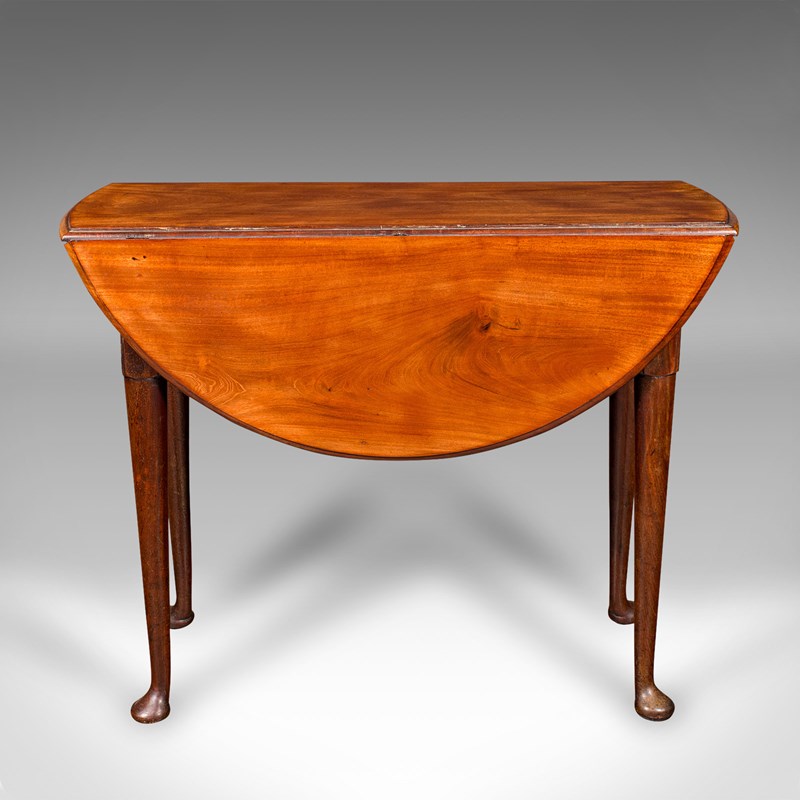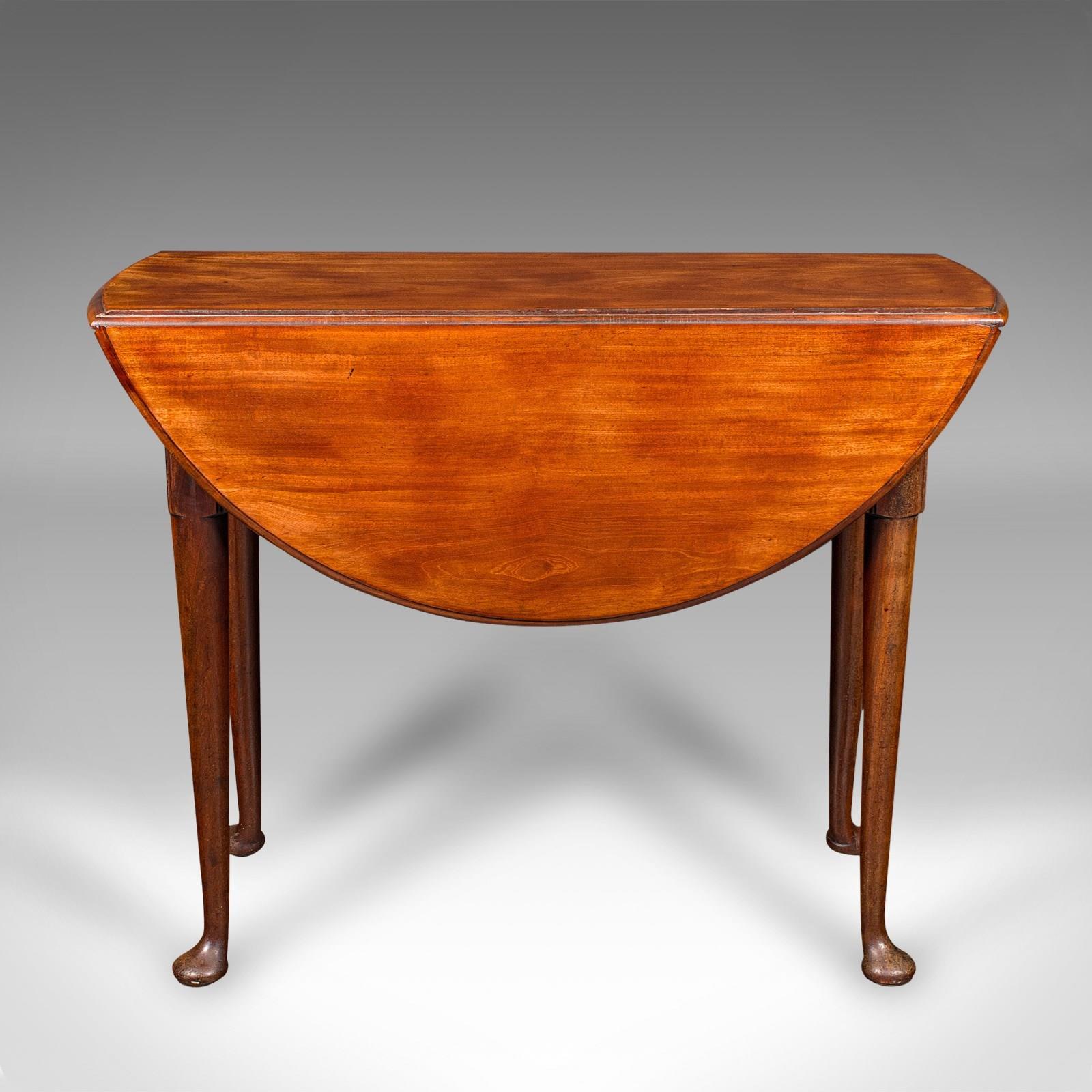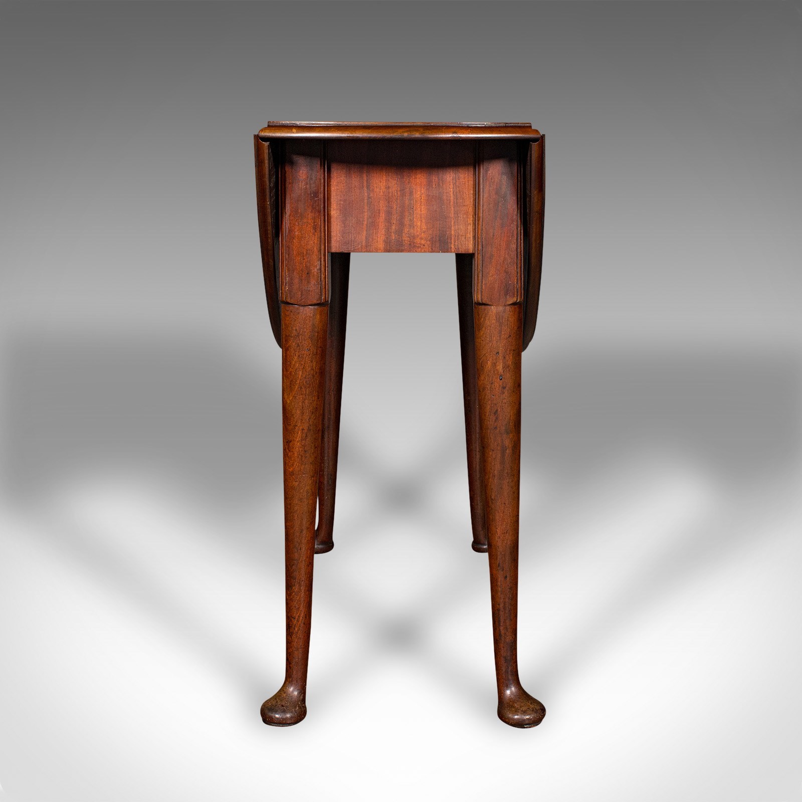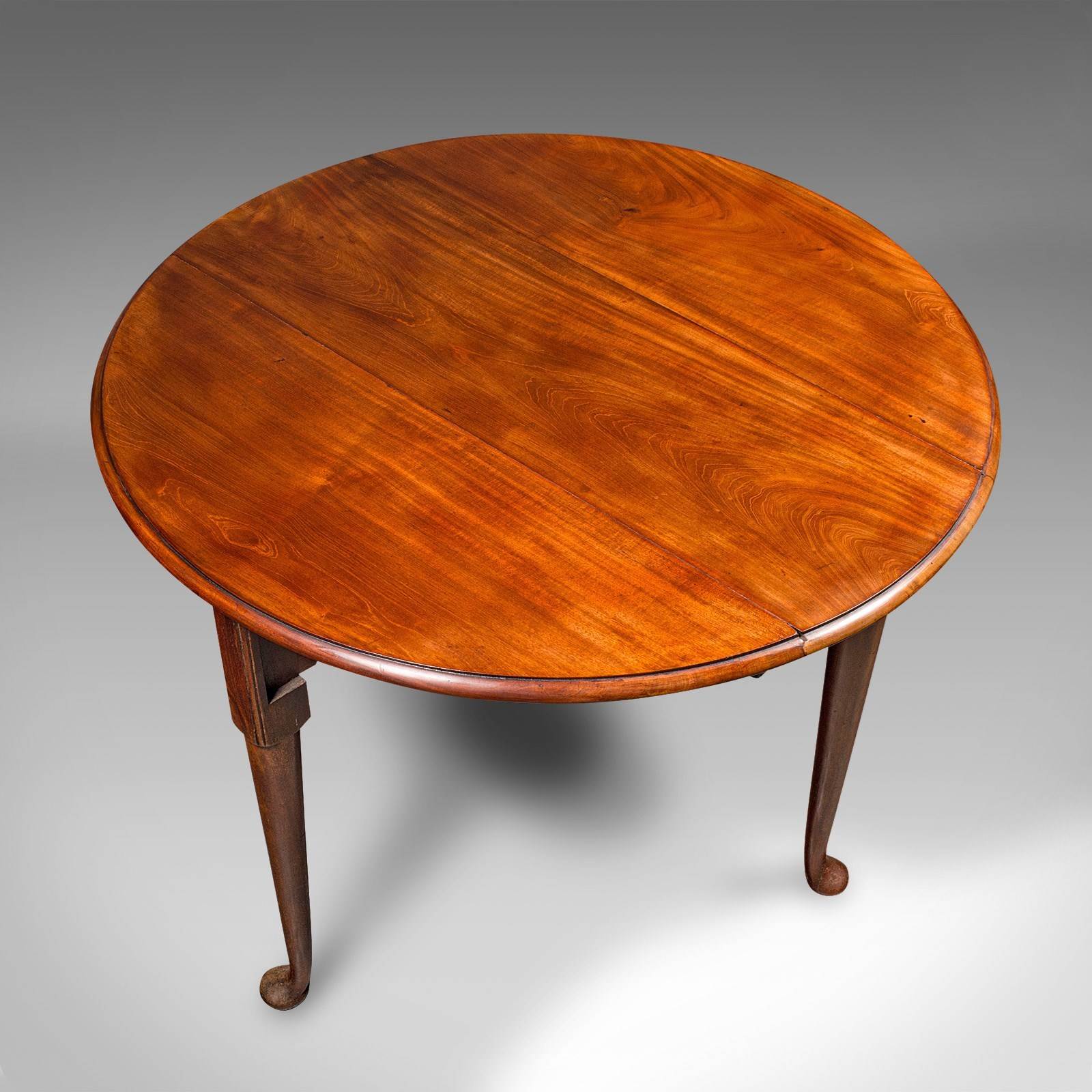 This is an antique 4 seat drop leaf supper table. An English, Cuban Mahogany extending gate leg serving table, dating to the mid Georgian period, circa 1750.