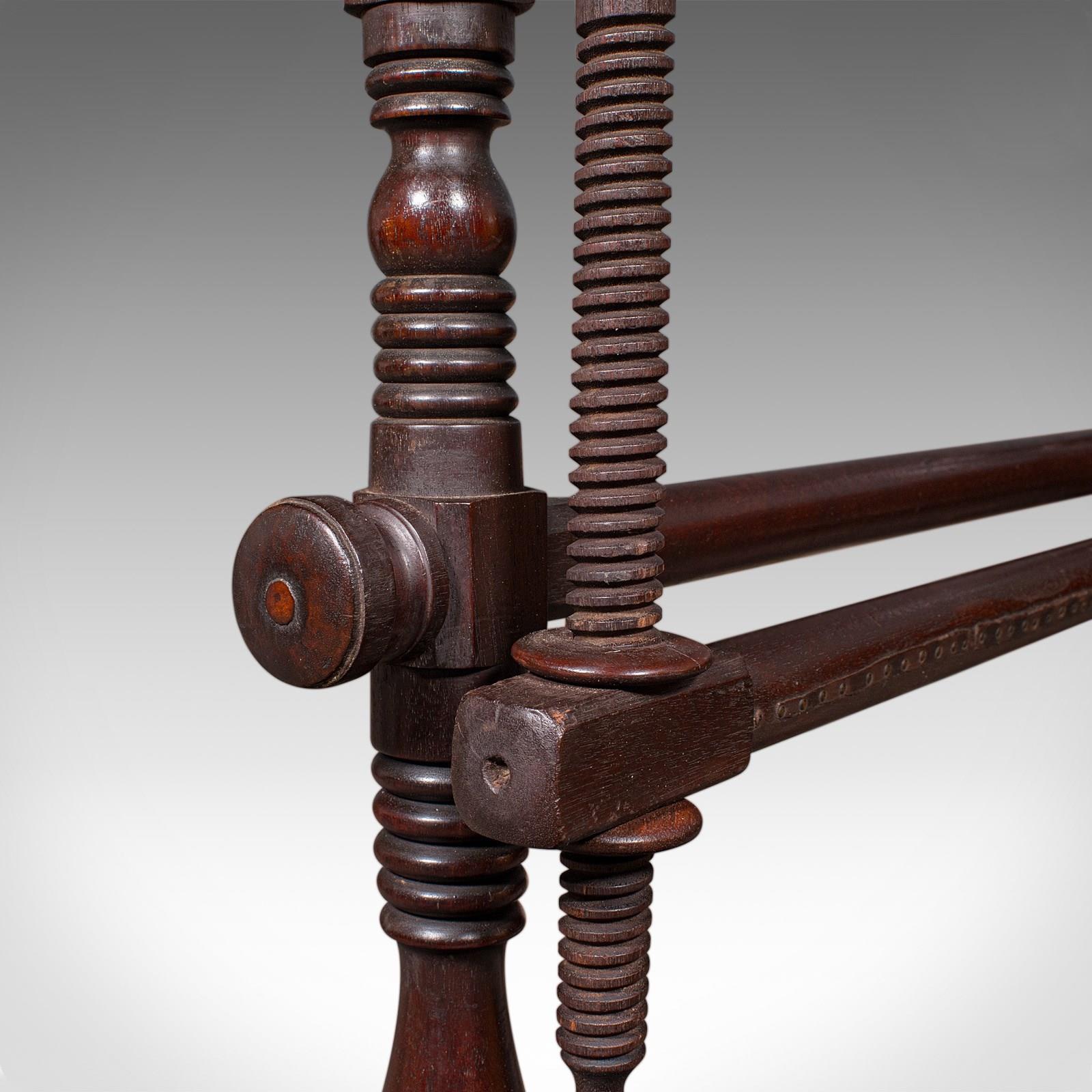 This is an antique adjustable tapestry frame. An English, mahogany country house needlepoint stretcher, dating to the late Victorian period, circa 1880.