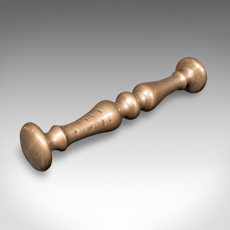 Tactile brass pestle with turned collar finish shows light ageing throughout