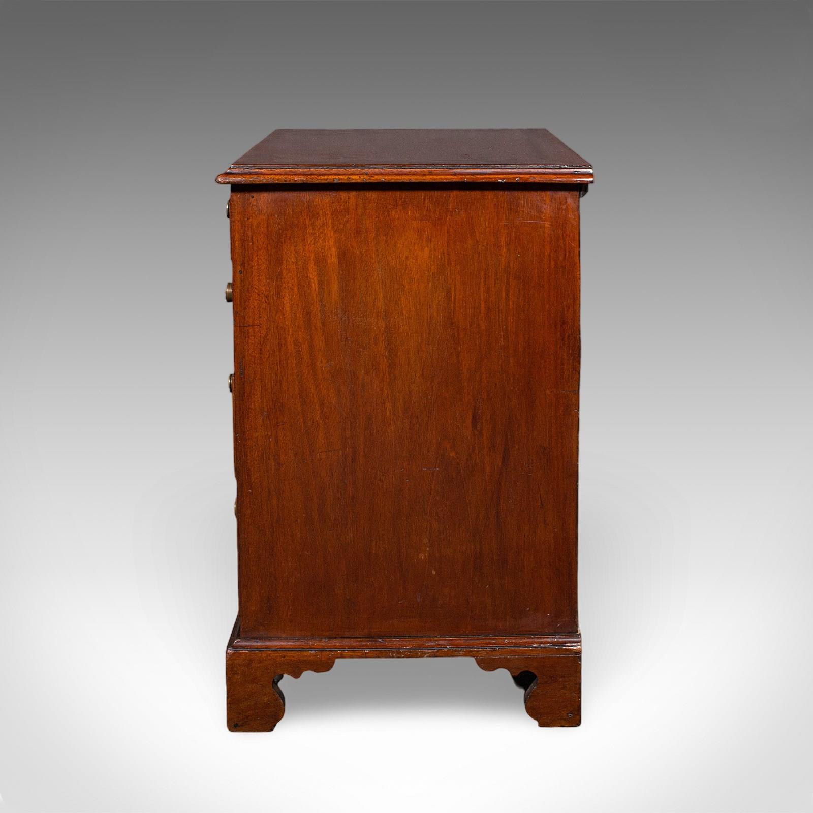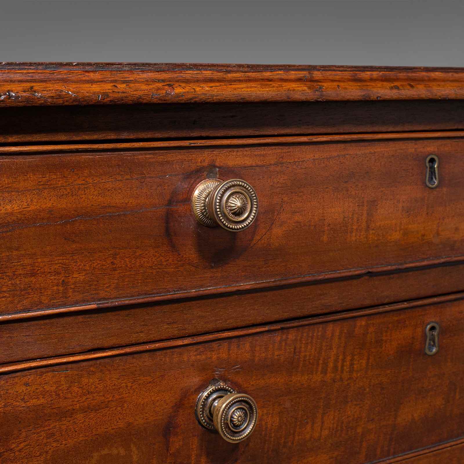 This is an antique bachelor's chest of drawers. An English, mahogany four drawer bedroom chest, dating to the Victorian period, circa 1870. A delightful late 19th century example offering fine colour and enduring practicality.