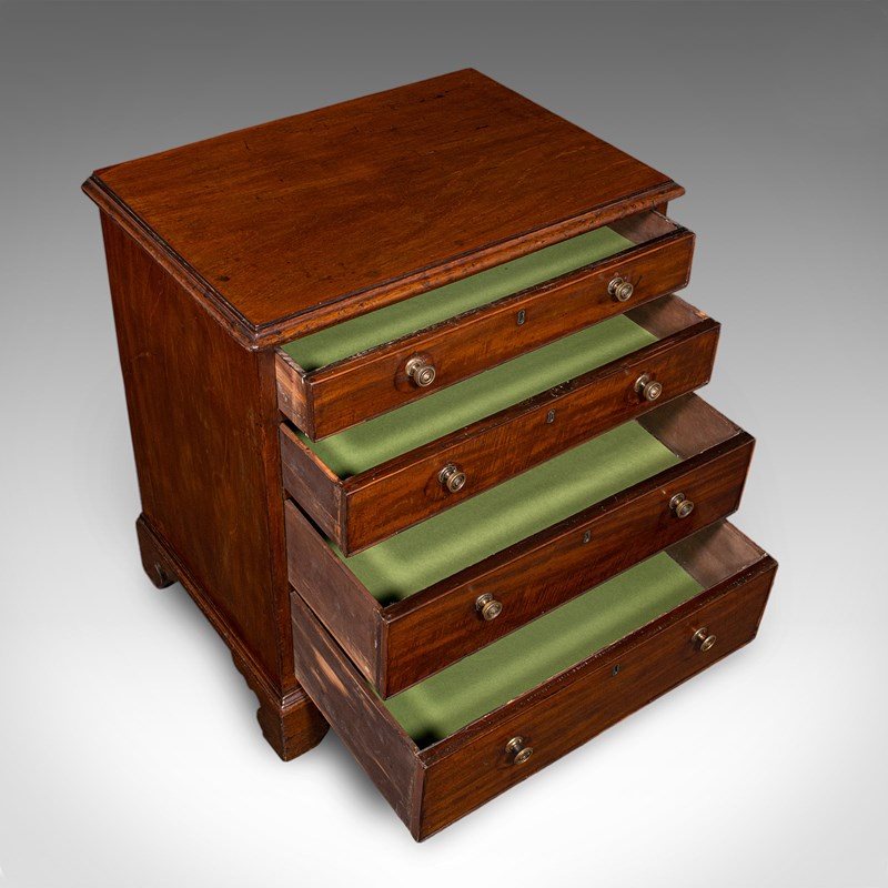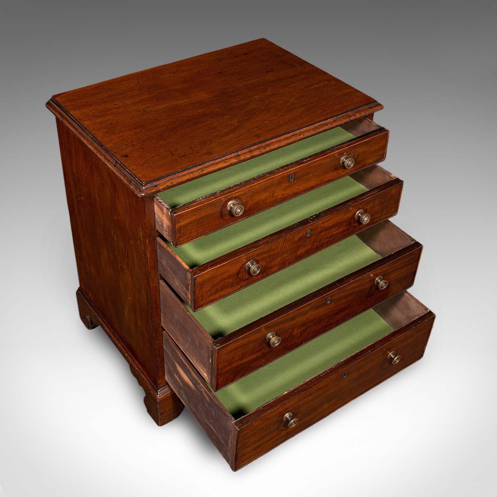 Arranged as four graduated, full-width drawers with green paper lining
