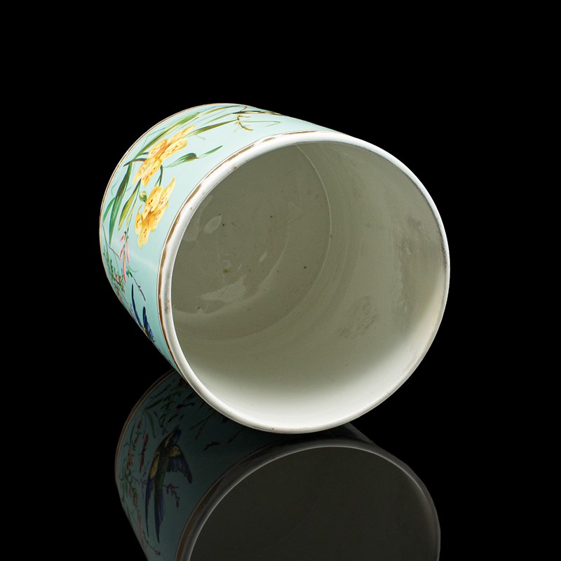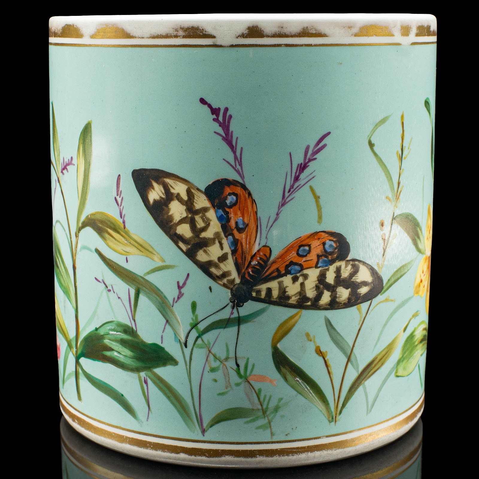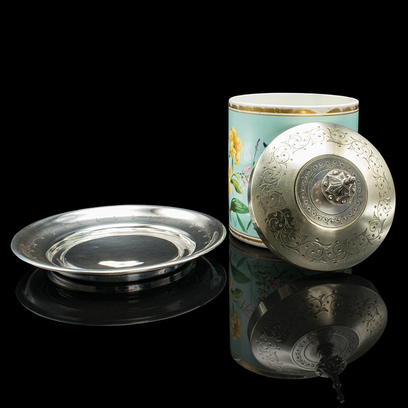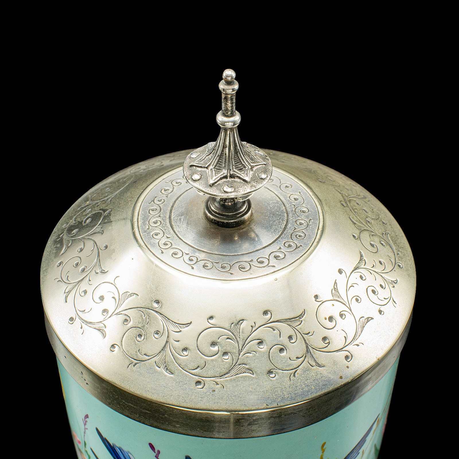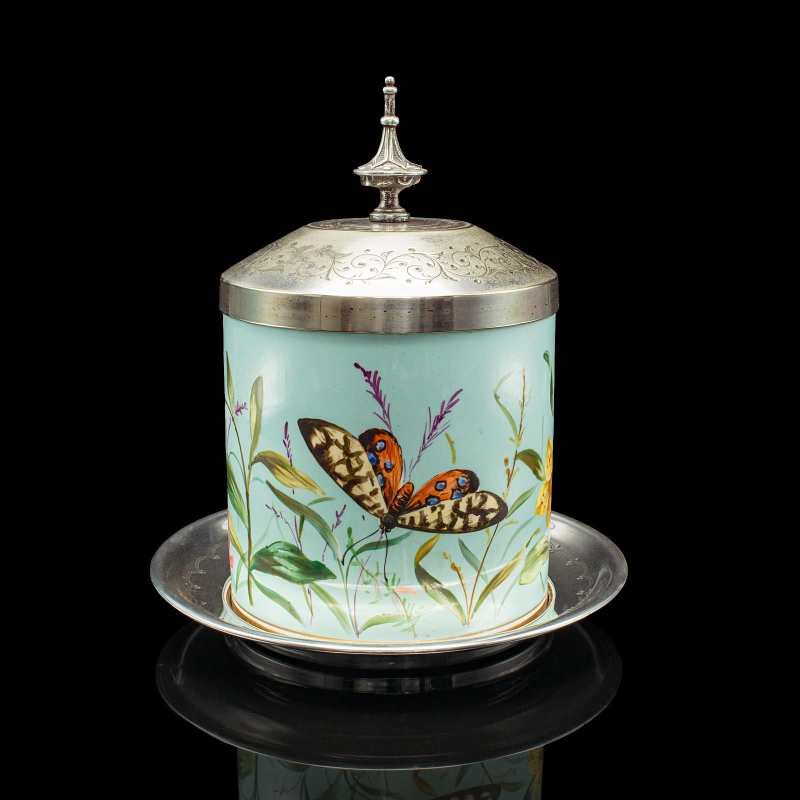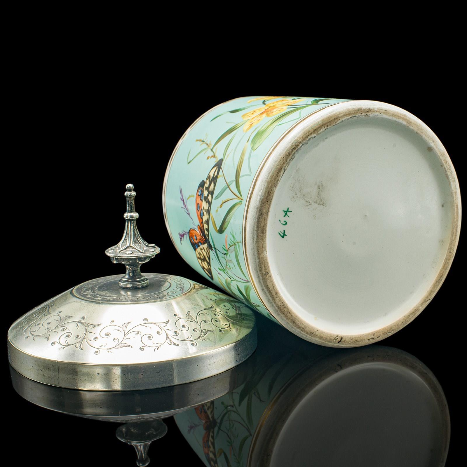 Antique Biscuit Barrel, English, Ceramic, Silver Plate, Kitchen Jar, Victorian