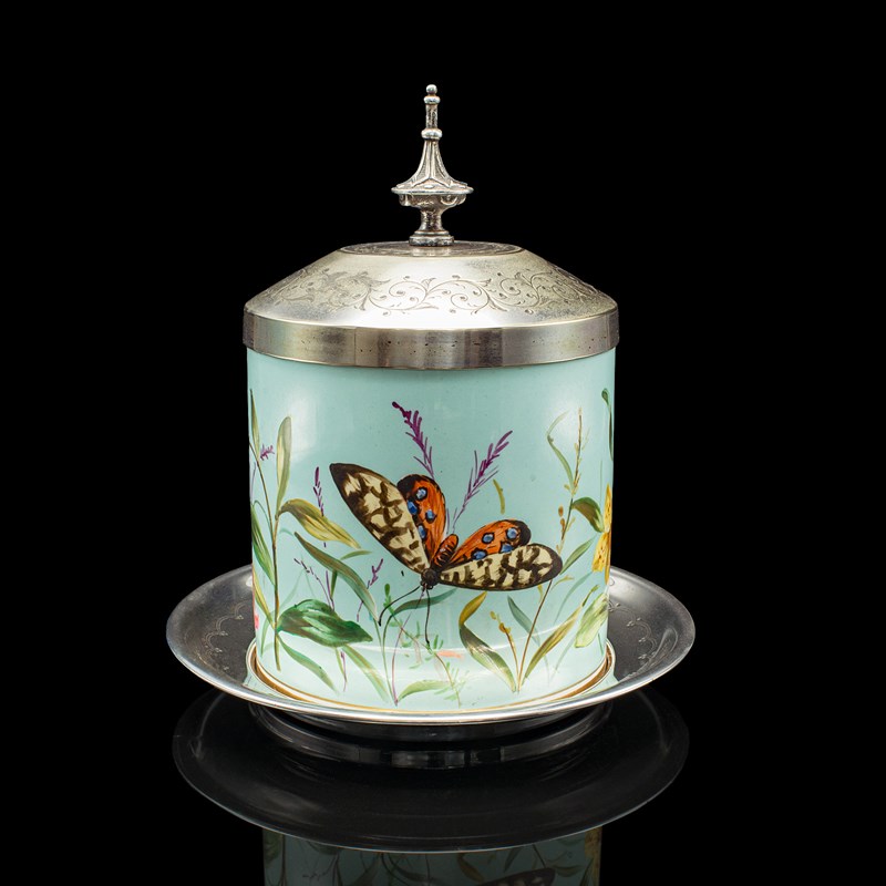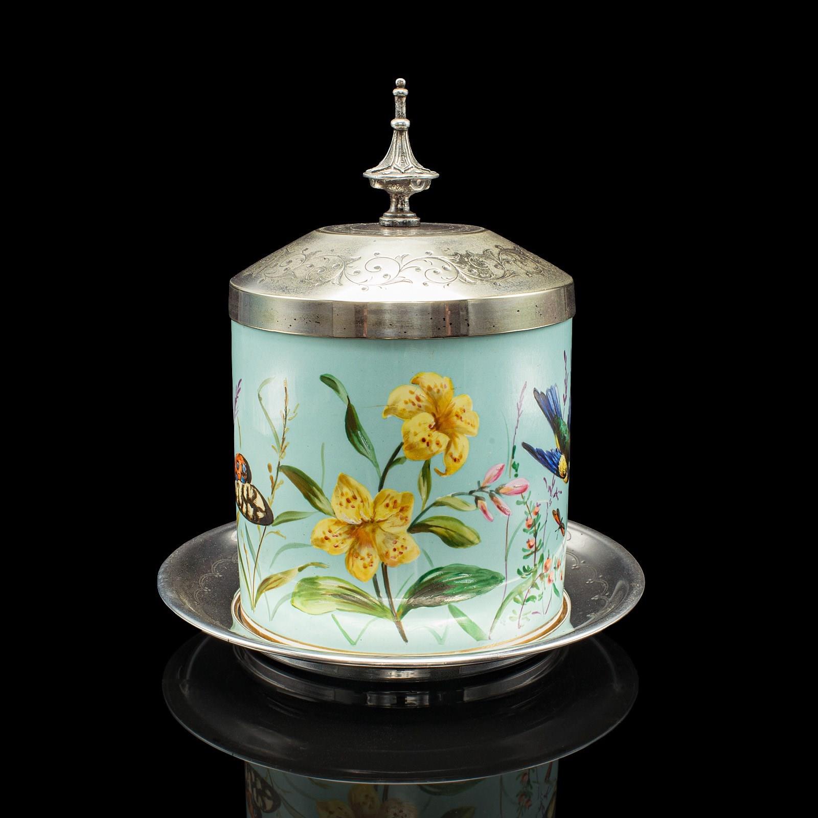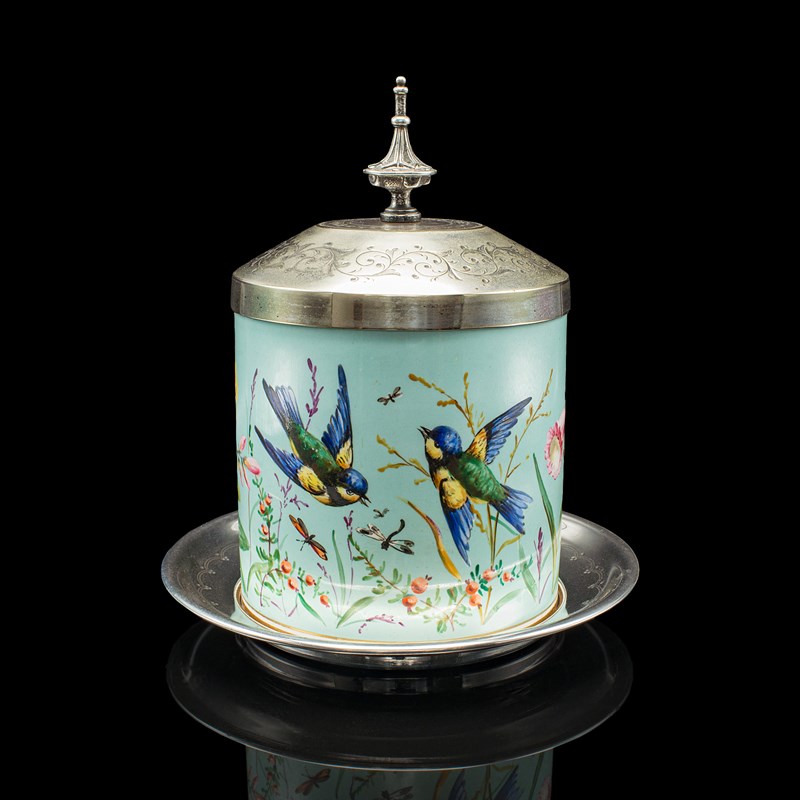 A decorative Victorian serving piece with enduring charm, this antique biscuit barrel is a wonderful accompaniment to afternoon tea or relaxing at the breakfast bar. Delivered ready for the home.