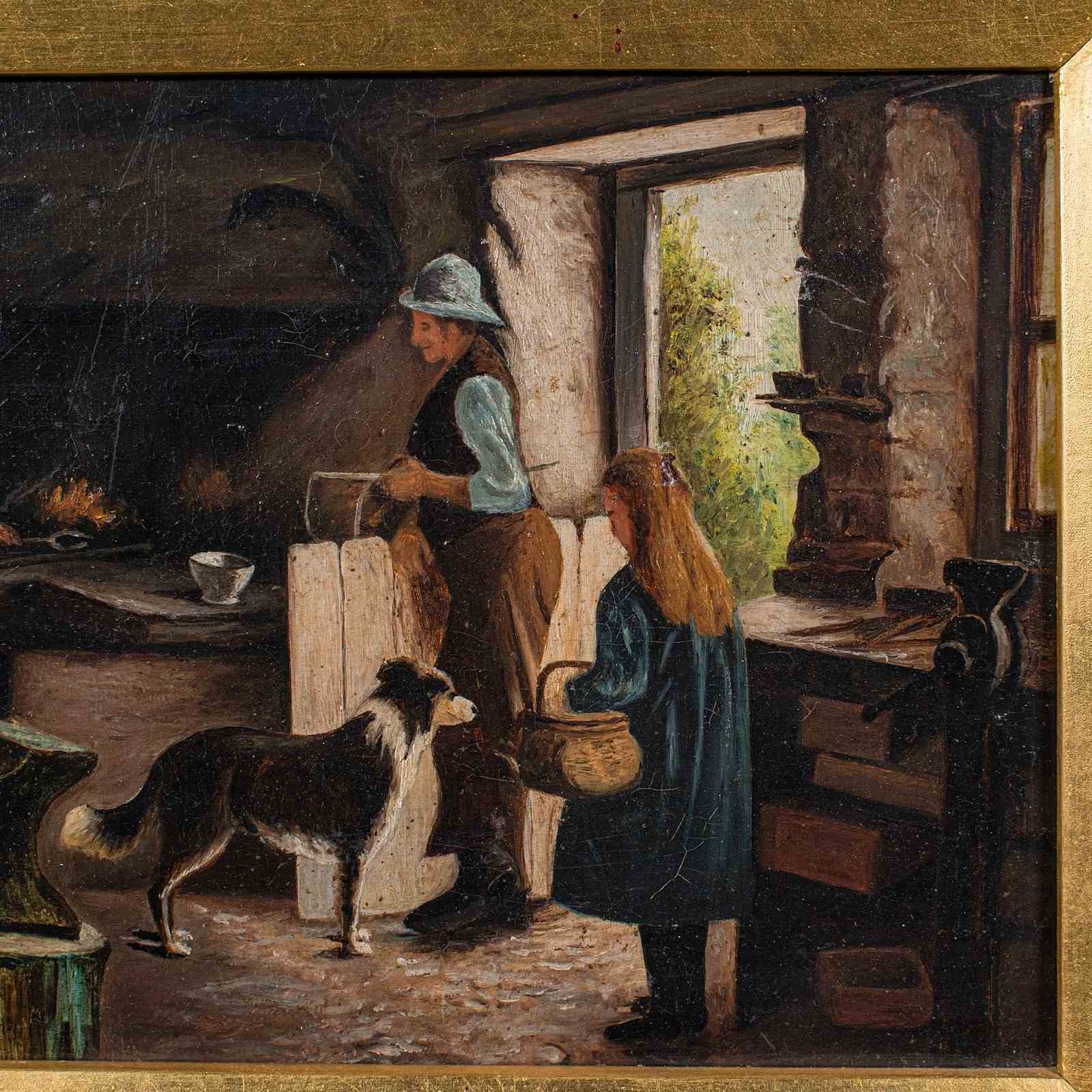 Antique Blacksmith's Cottage Painting, English School, Art, Picture, Figural