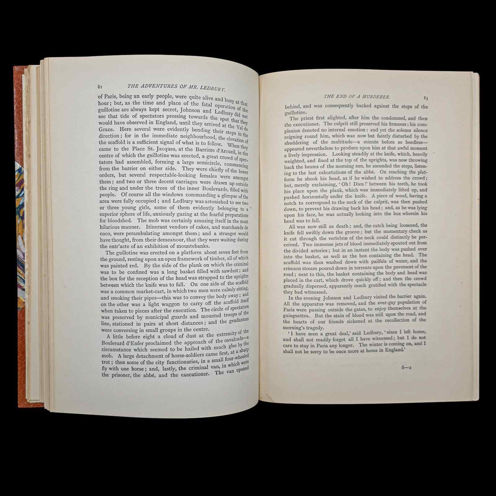 This is an antique copy of Adventures of Mr Ledbury by Albert Smith, a humorous novel exploring themes of culture and travel. Presented in intact order with light markings, the book has been given a later professional binding, offering both durability and elegance. With striking marble paper on board and a leather spine with gilt titling and ribbed detail, it stands as a fine example of collectible 19th century literature.