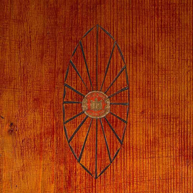 - Fascia engraved with an oval medallion, the corners hosting foliate motif