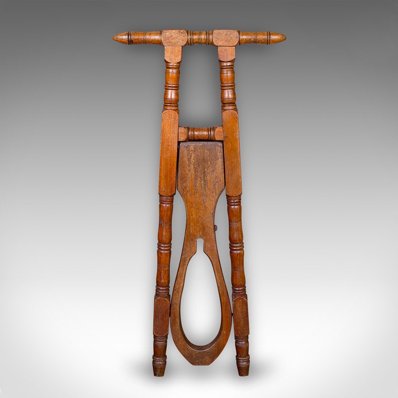 This is an antique boot jack. An English, walnut folding shoe pull, dating to the Victorian period, circa 1870. A fine example of enduring Victorian utility, with rich walnut hues and practical folding form.