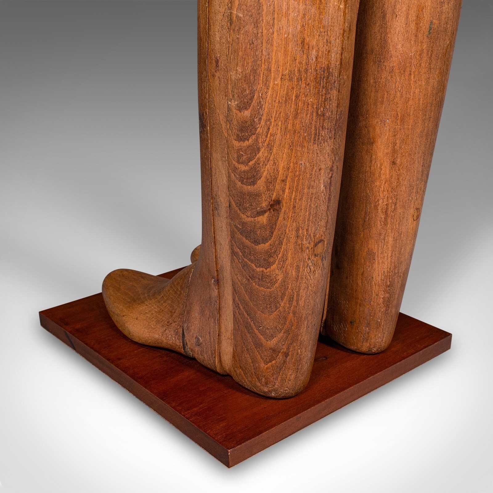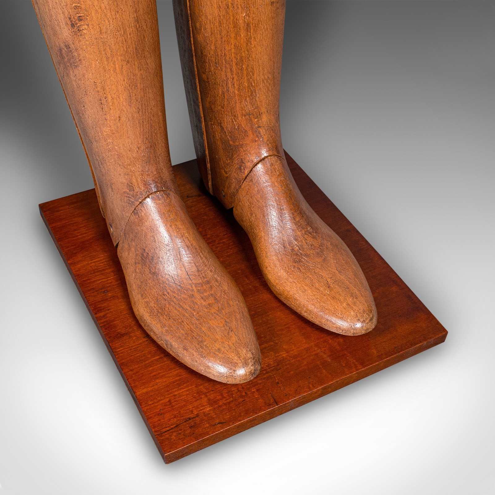 This is an antique bootmaker’s display. An English, riding boot stretcher mounted on a mahogany plinth, dating to the Edwardian period, circa 1910. A fascinating example of early 20th century retail craftsmanship, offering both practical charm and decorative appeal.