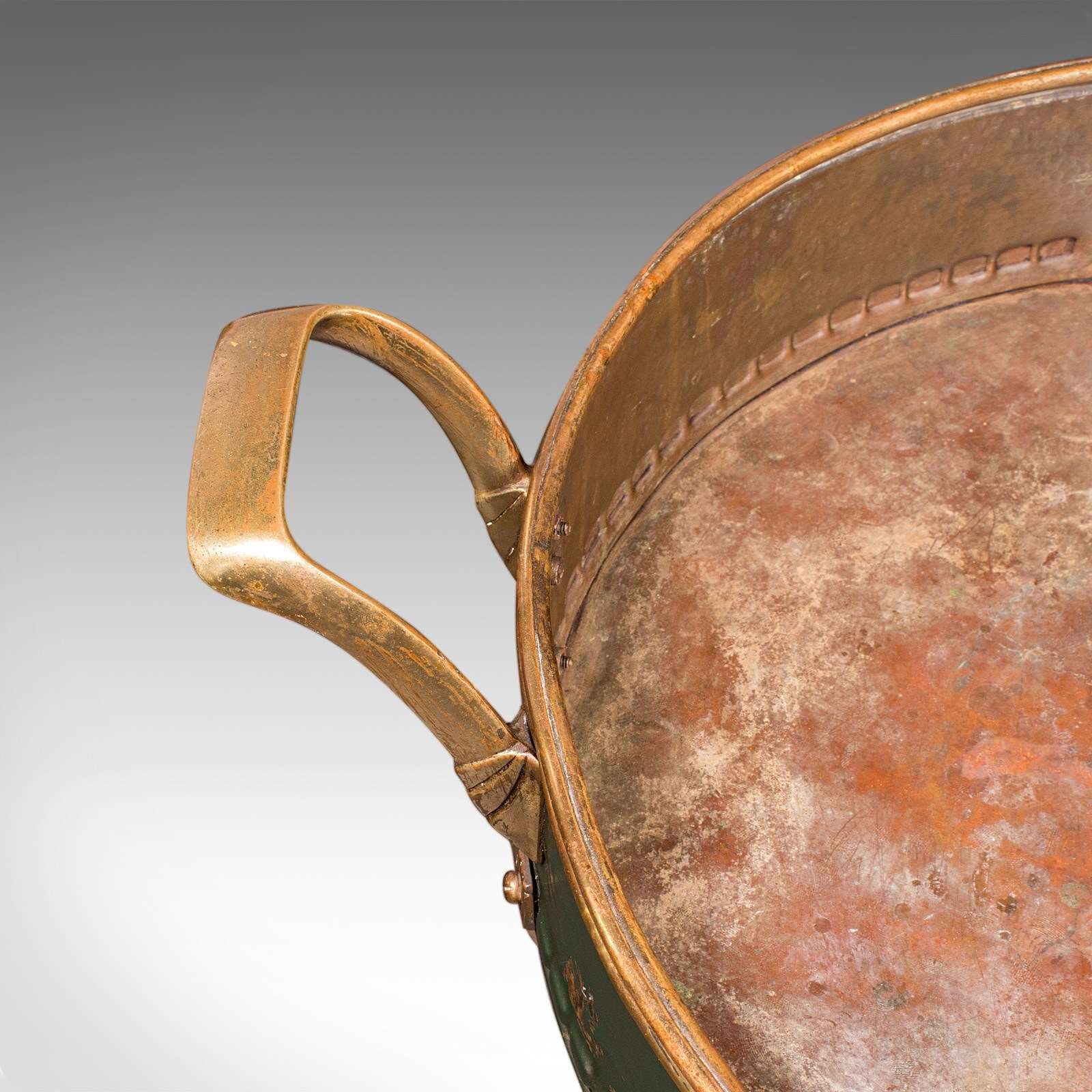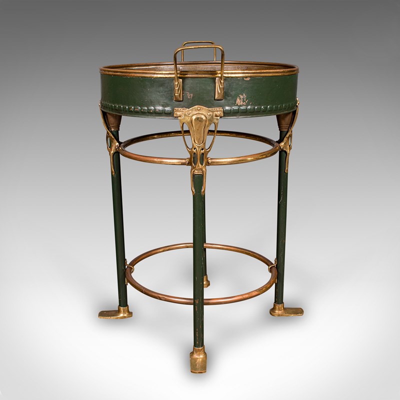 This is an antique bottle cooler, a French, painted brass cocktail party or jardinière stand, dating to the Victorian period, circa 1880. A charming and distinctive centrepiece, equally suited to hosting champagne as it is displaying seasonal foliage.