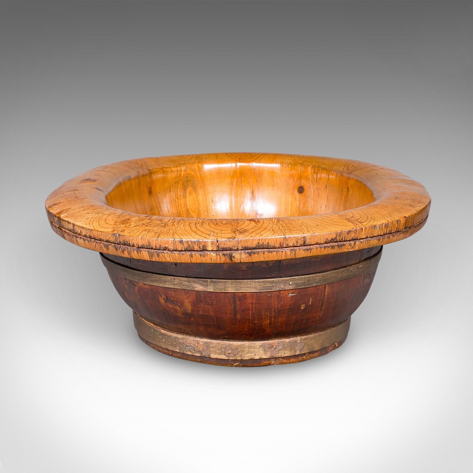 This is an antique boulangerie display basket. A French, cedar and brass produce merchandising dish or stand, dating to the late Victorian period, circa 1900. A charming piece of retail history, equally suited to decorative home use.