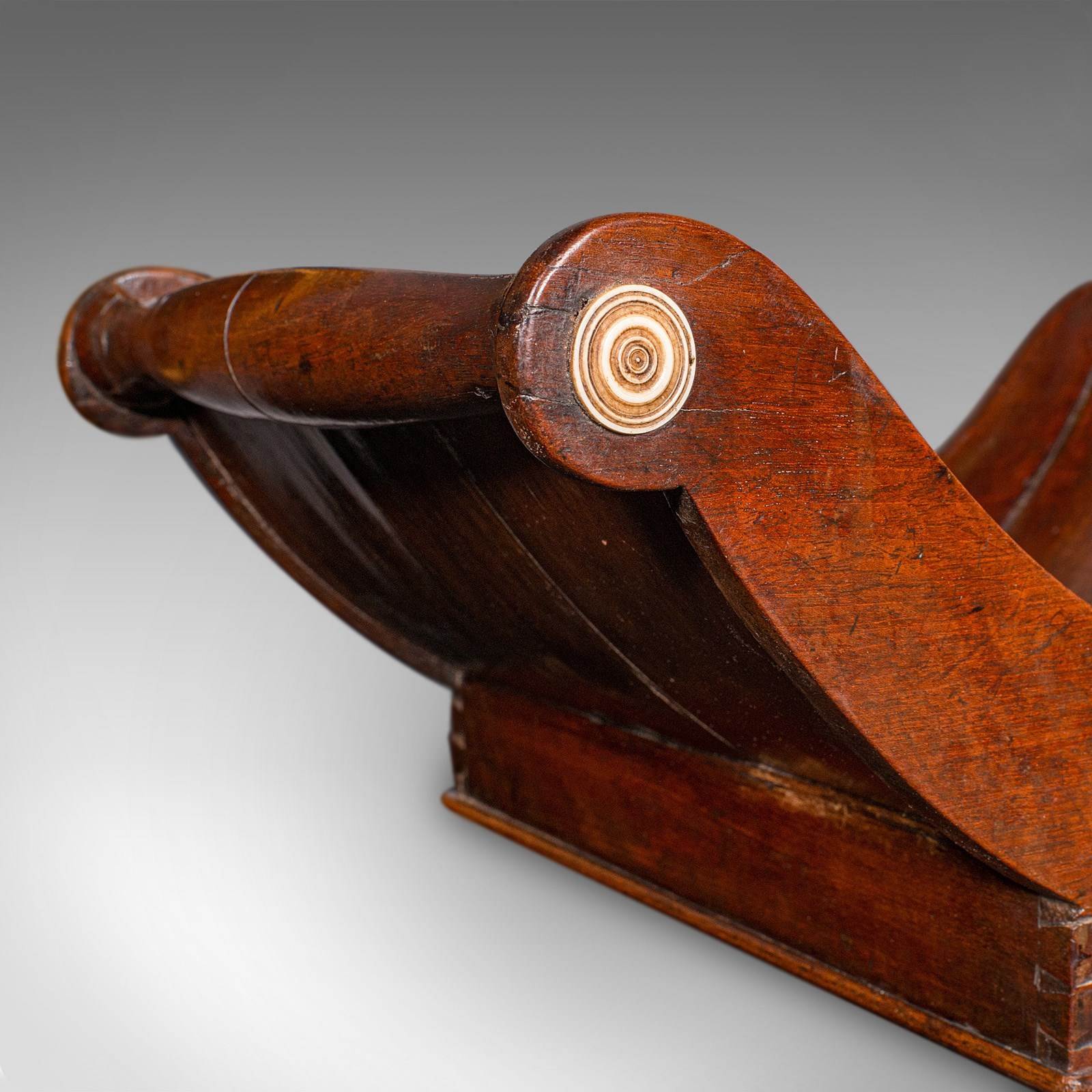 This is an antique butler's Stilton serving stand. An English, mahogany cheese truckle crescent, dating to the Georgian period, circa 1780. An exquisite and unusual serving piece, rich in charm and form, ideal for the collector or as a distinctive addition to the traditional dining room.
