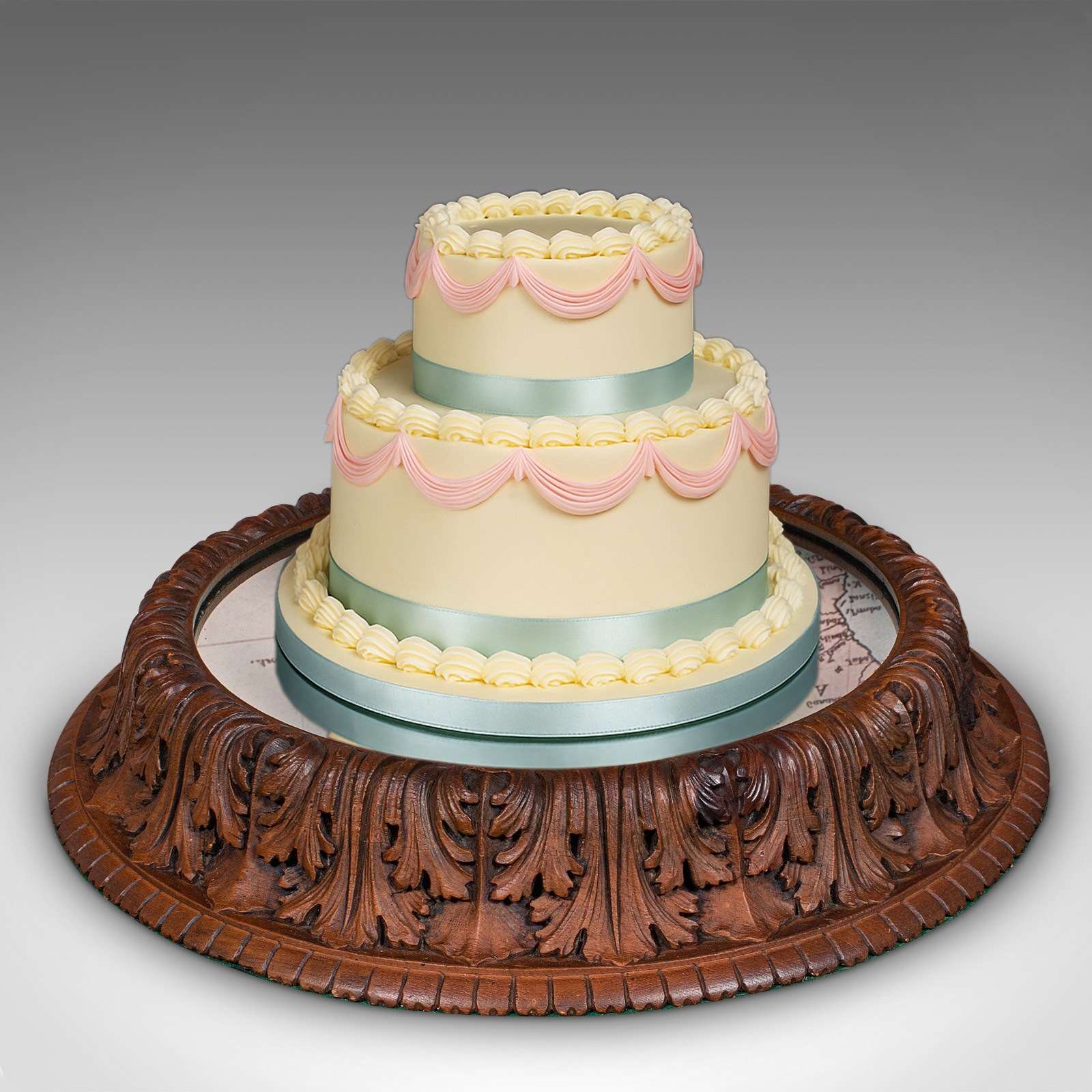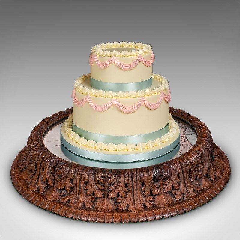 Antique Cake Display Stand, German, Oak, Mirrored Gateau Centrepiece, Victorian