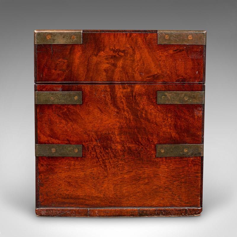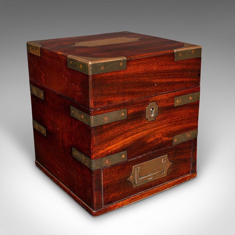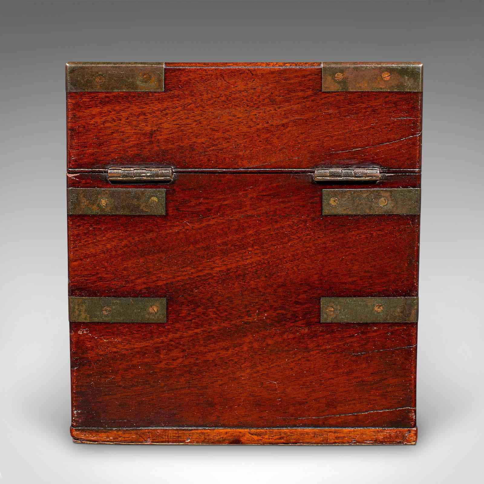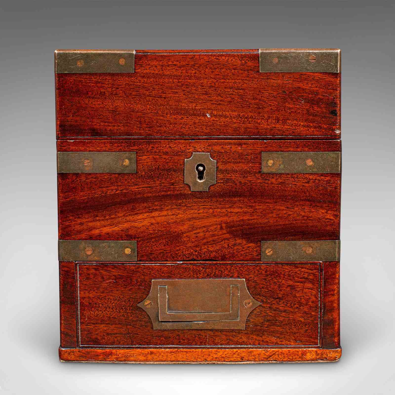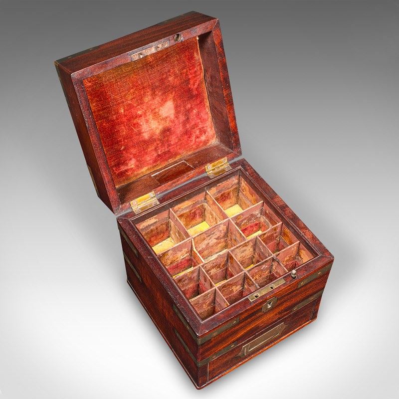 A delightfully presented example of Georgian field apothecary design, this antique box makes for an intriguing conversation piece or display cabinet centrepiece. Solid joints and construction, delivered ready for the home.