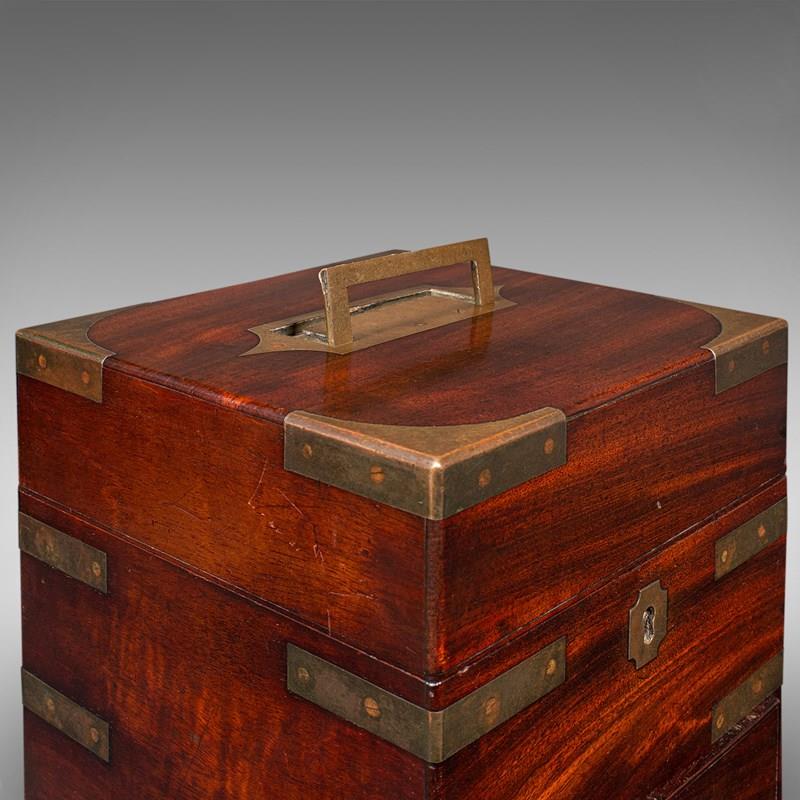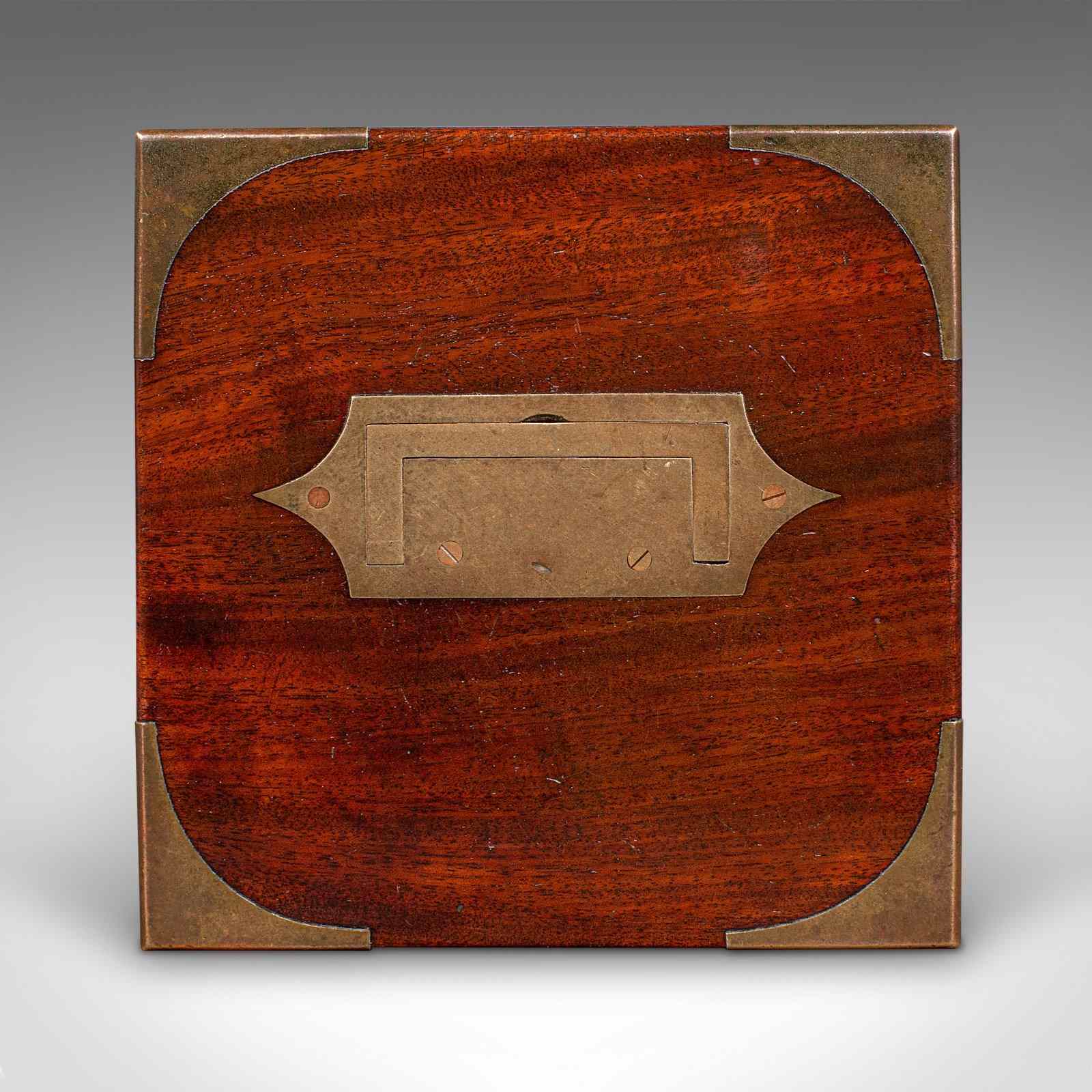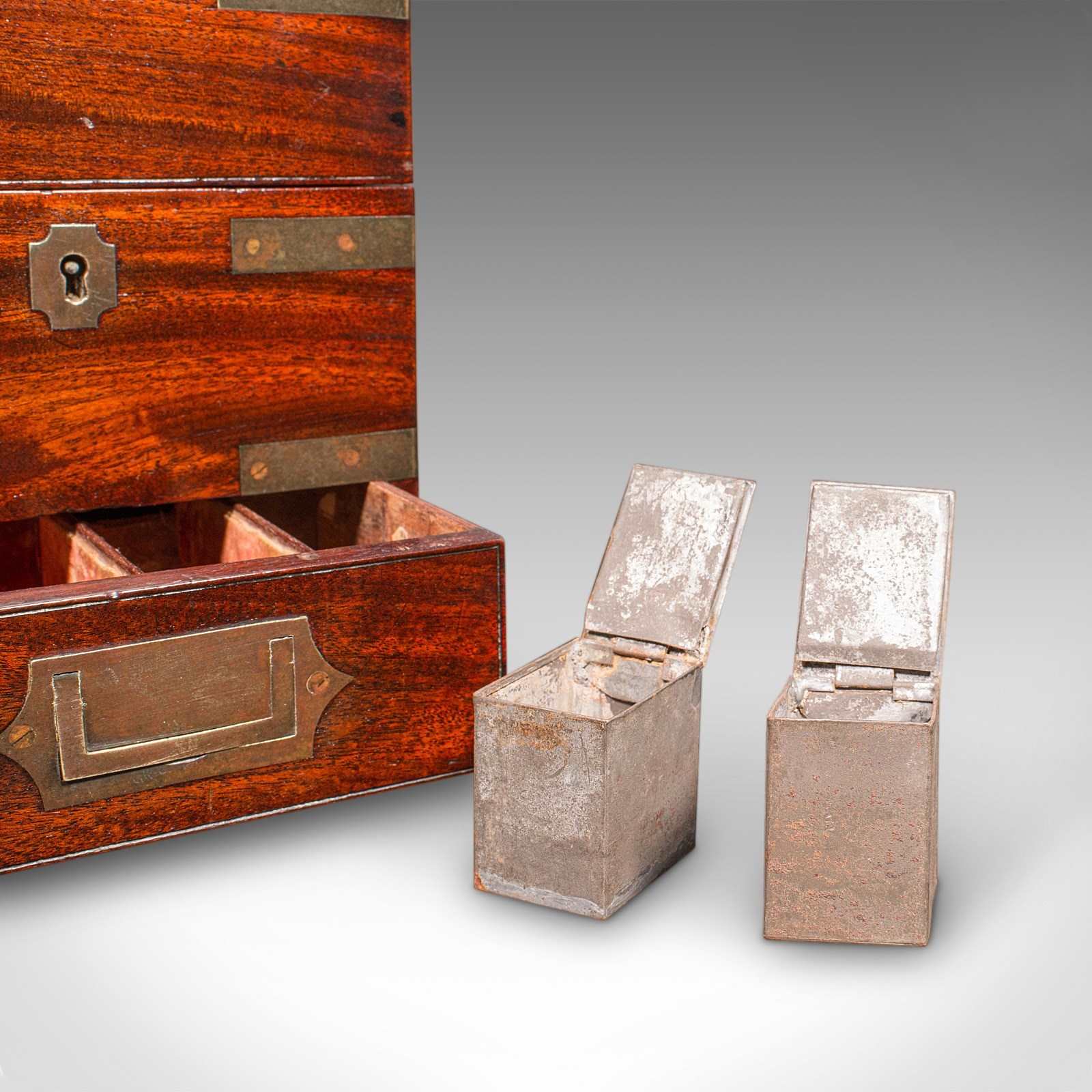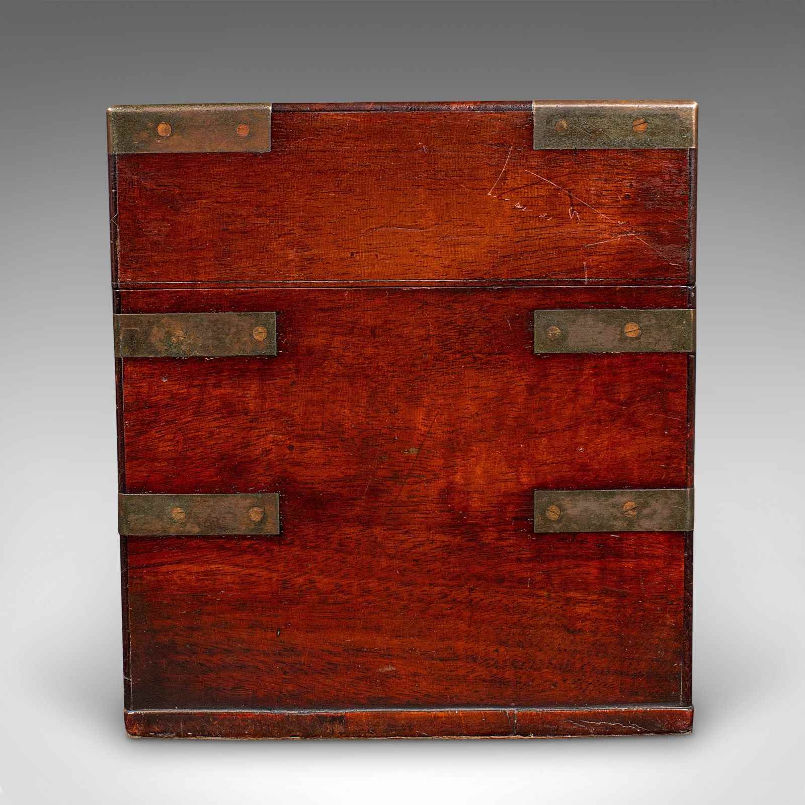 A delightfully presented example of Georgian field apothecary design, this antique box makes for an intriguing conversation piece or display cabinet centrepiece. Solid joints and construction, delivered ready for the home.