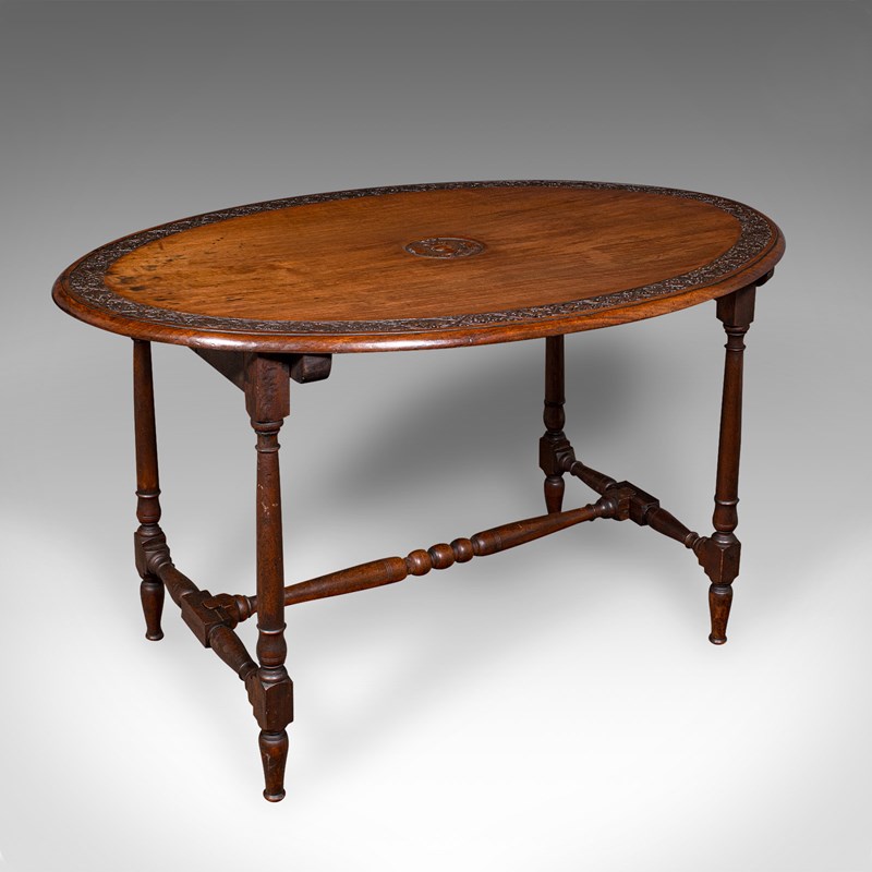 Striking oval top, centred with a relief carved medallion of exceptional detail