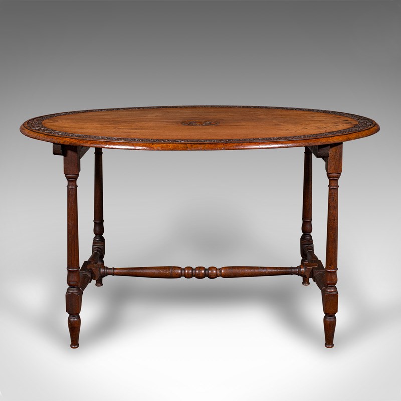 Antique Campaign Mess Table, English, Walnut, Oval, Occasional, Victorian, 1900